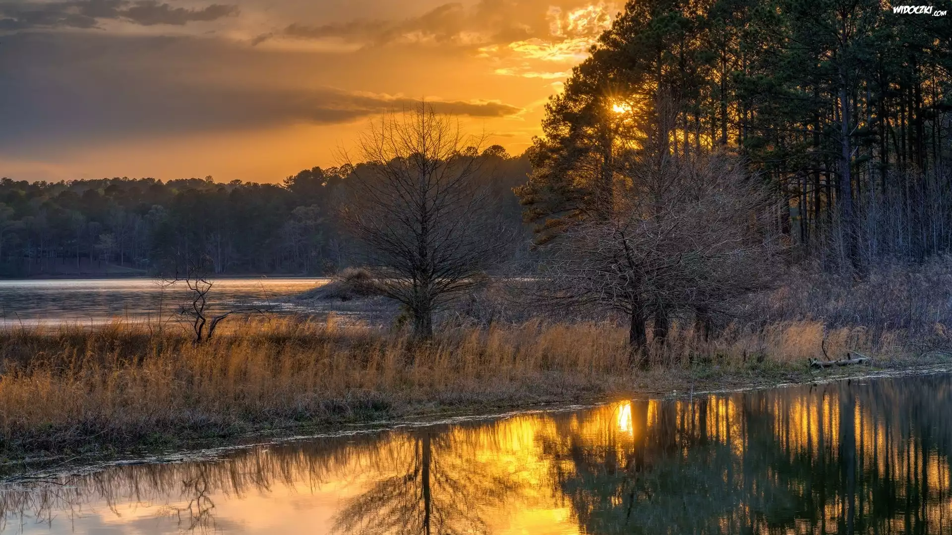 Zdjęcia, Rzeka, Las, Zachód słońca