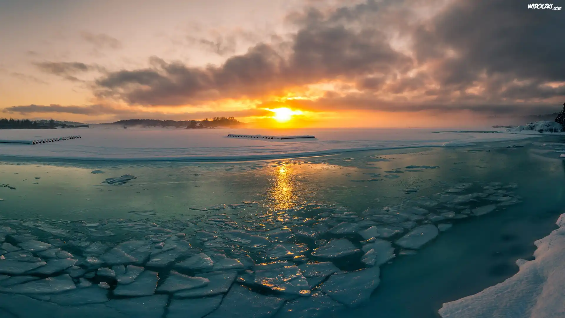 Zdjęcia, Rzeka, Lód, Zachód Słońca