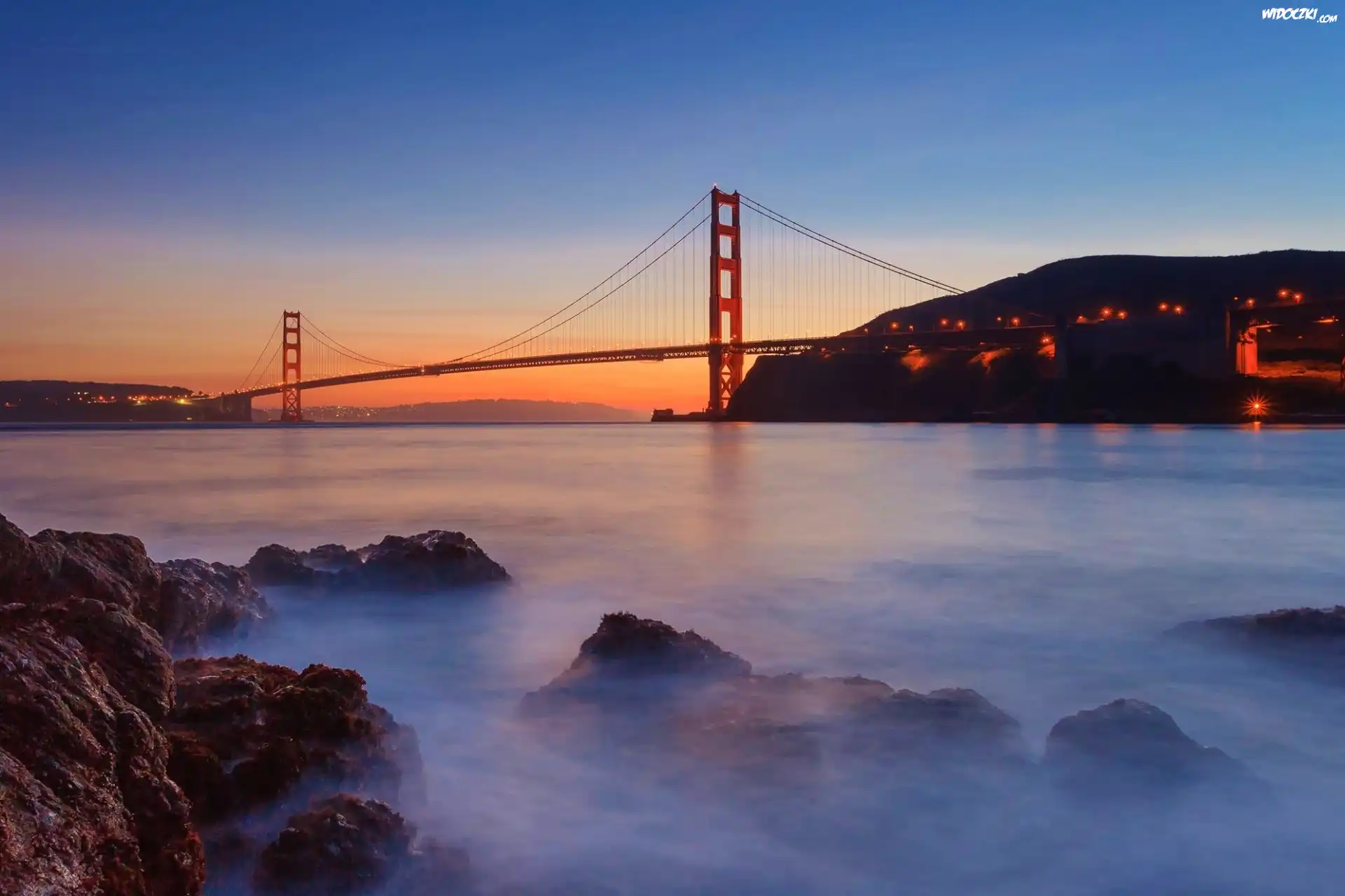 Zdjęcia, Rzeka, Zachód Słońca, Most Golden Gate