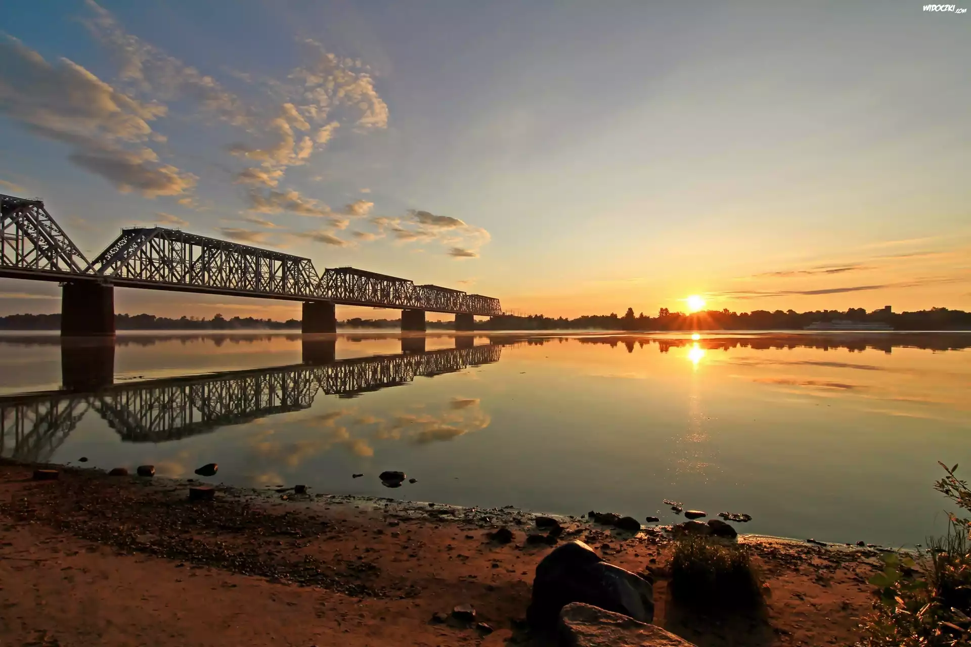 Zdjęcia, Rzeka, Most, Zachód, Słońca