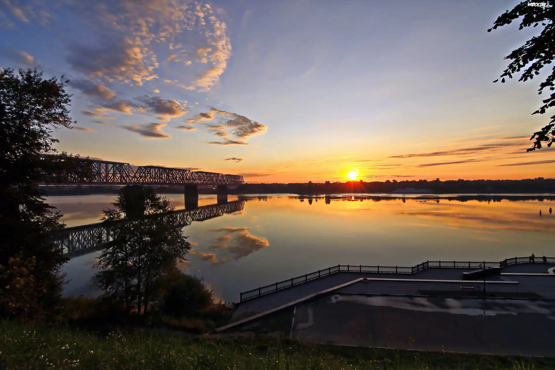 Zdjęcia, Rzeka, Most, Zachód, Słońca