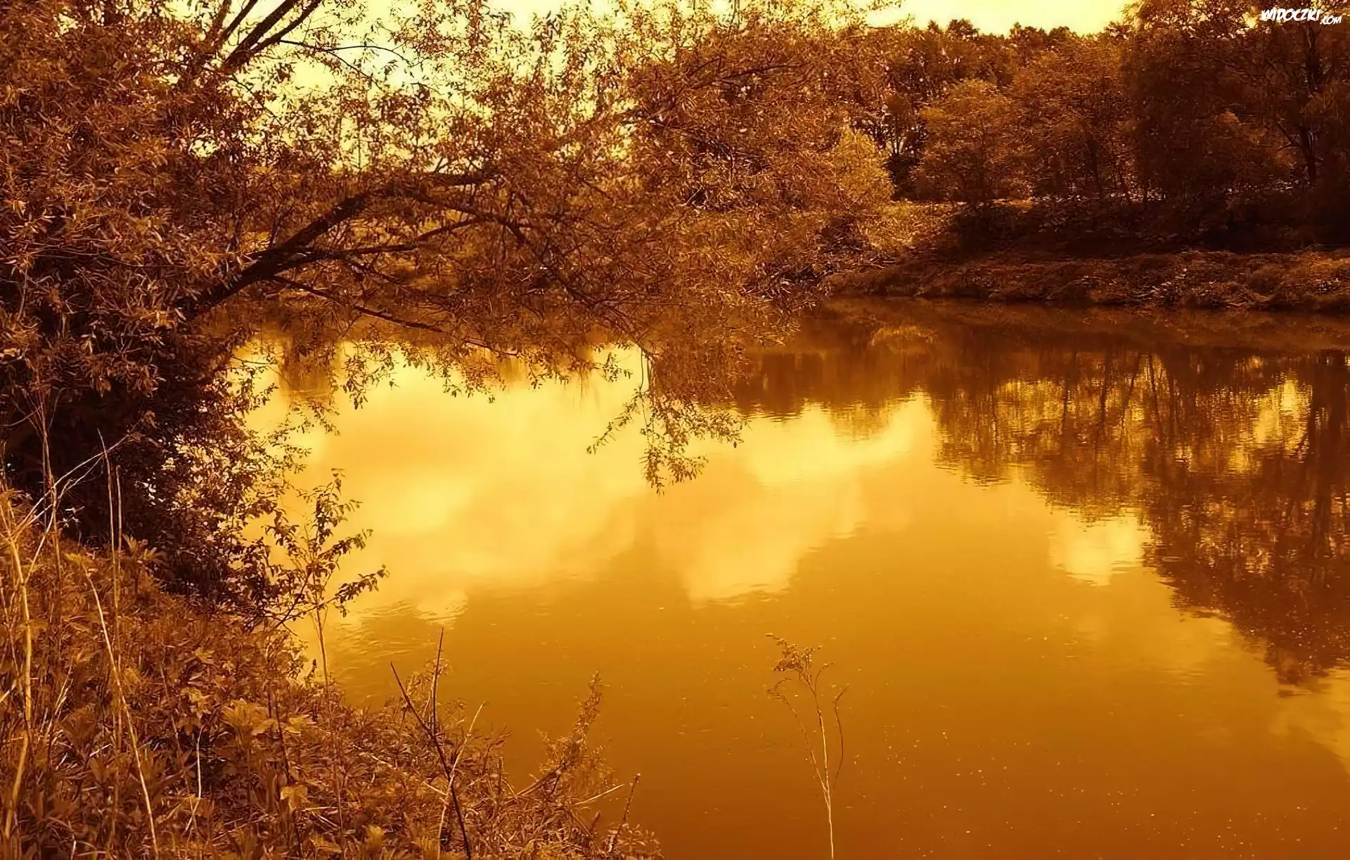 Zdjęcia, Rzeka, Kolory, Zachodzącego, Słońca