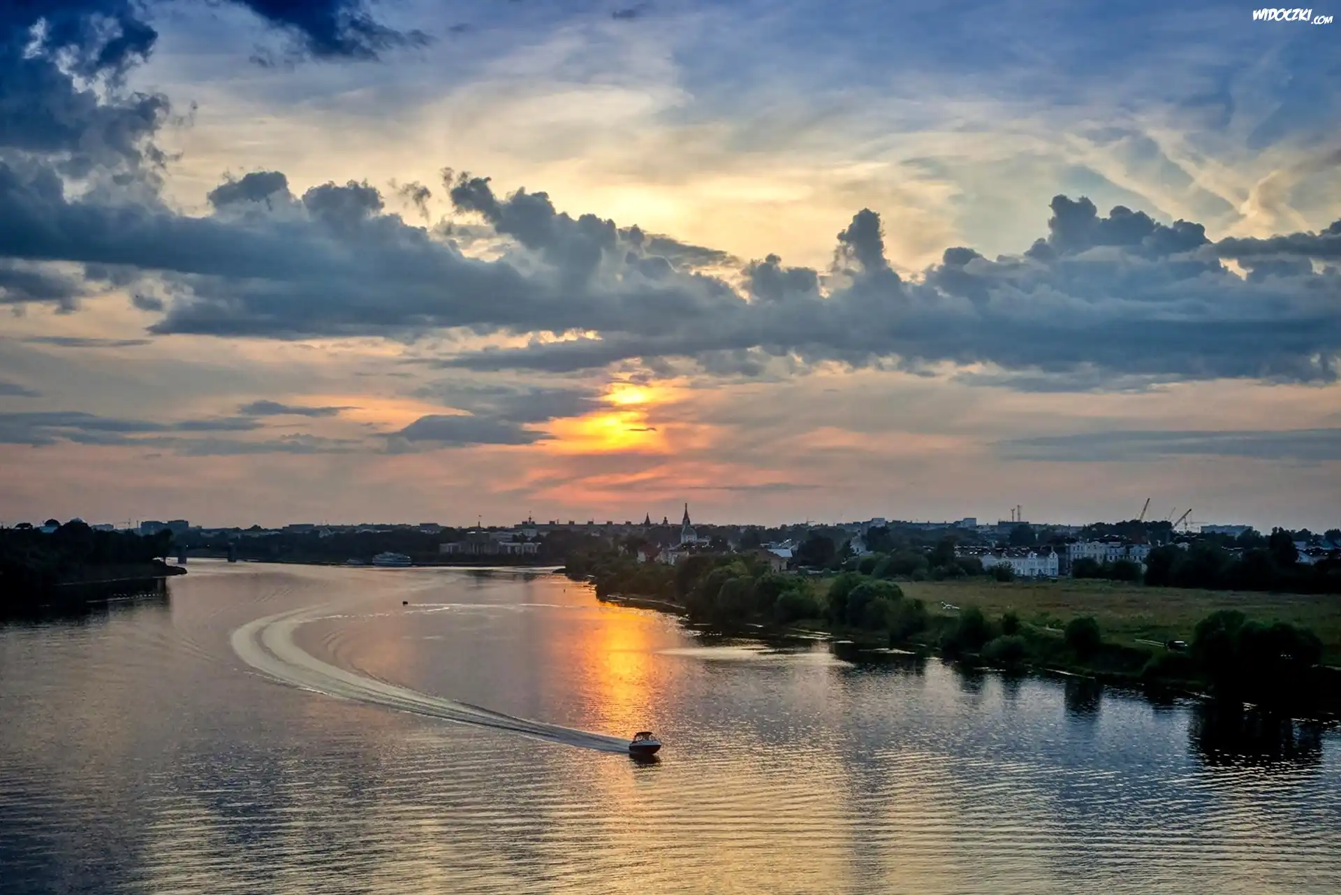 Zdjęcia, Rzeka, Motorówka, Zdjęcie miasta