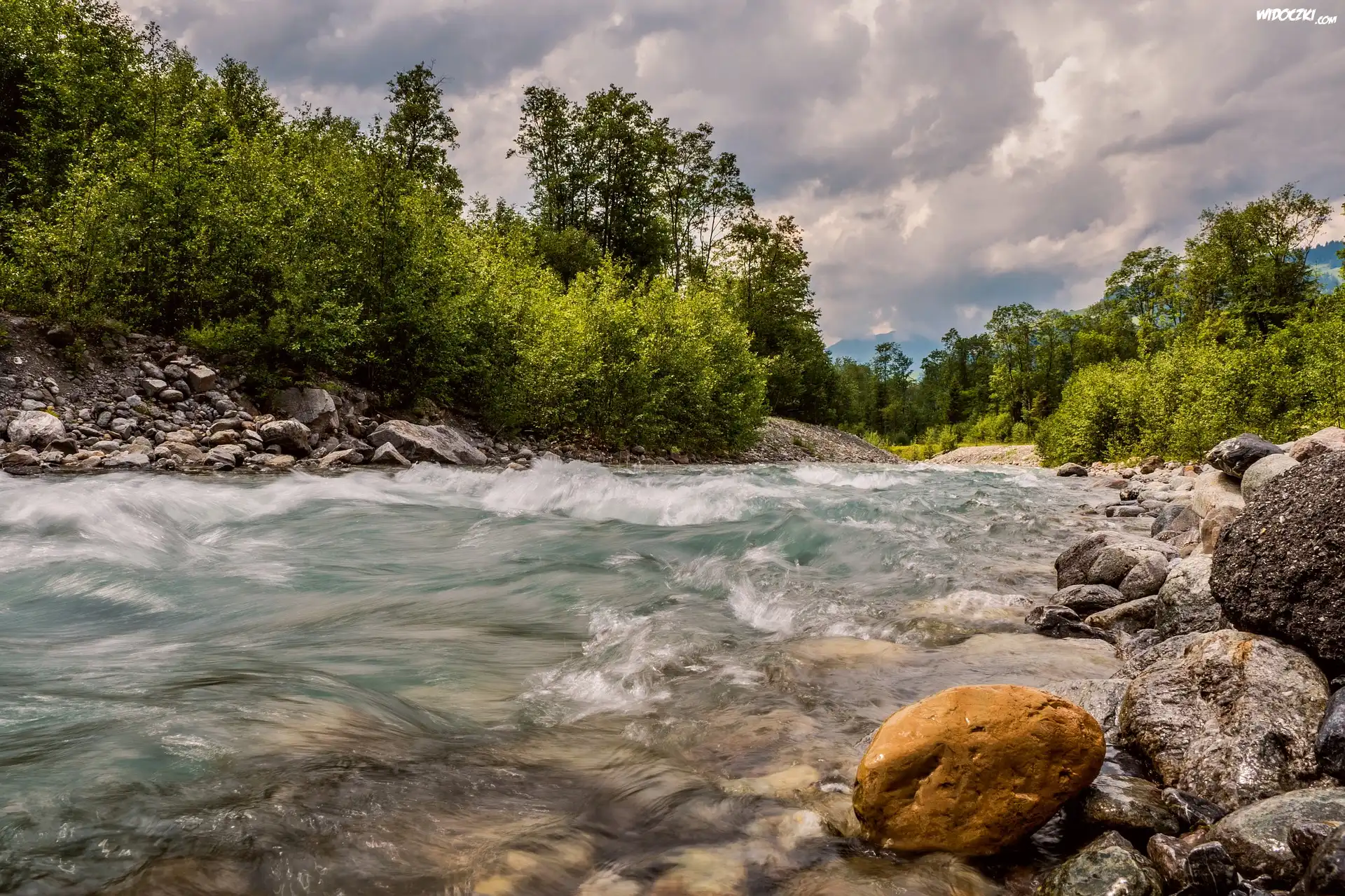 Zdj臋cia, Rzeka, Kamienie, Zielone, Drzewa