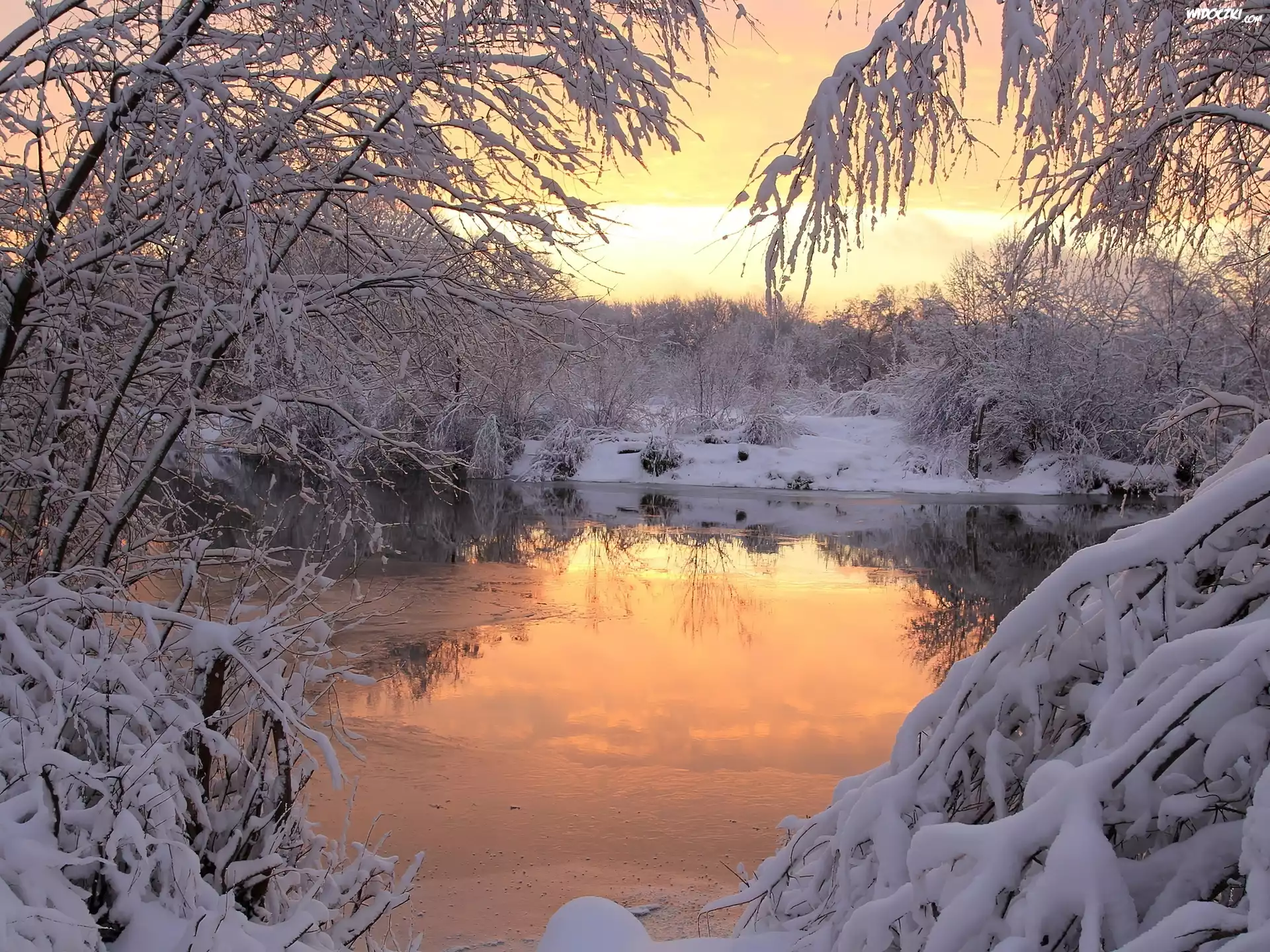 Zdj臋cia, Zima, Rzeka, Drzewa