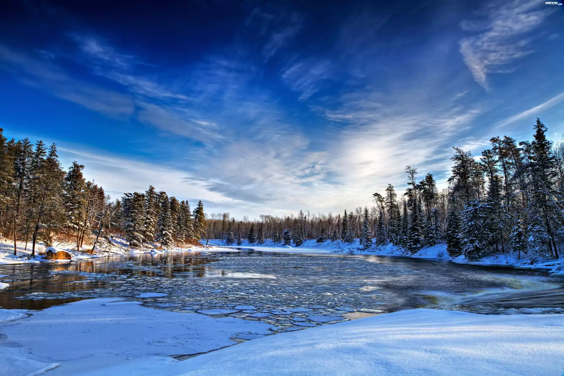 Zdjęcia, Zima, Rzeka, Drzewa