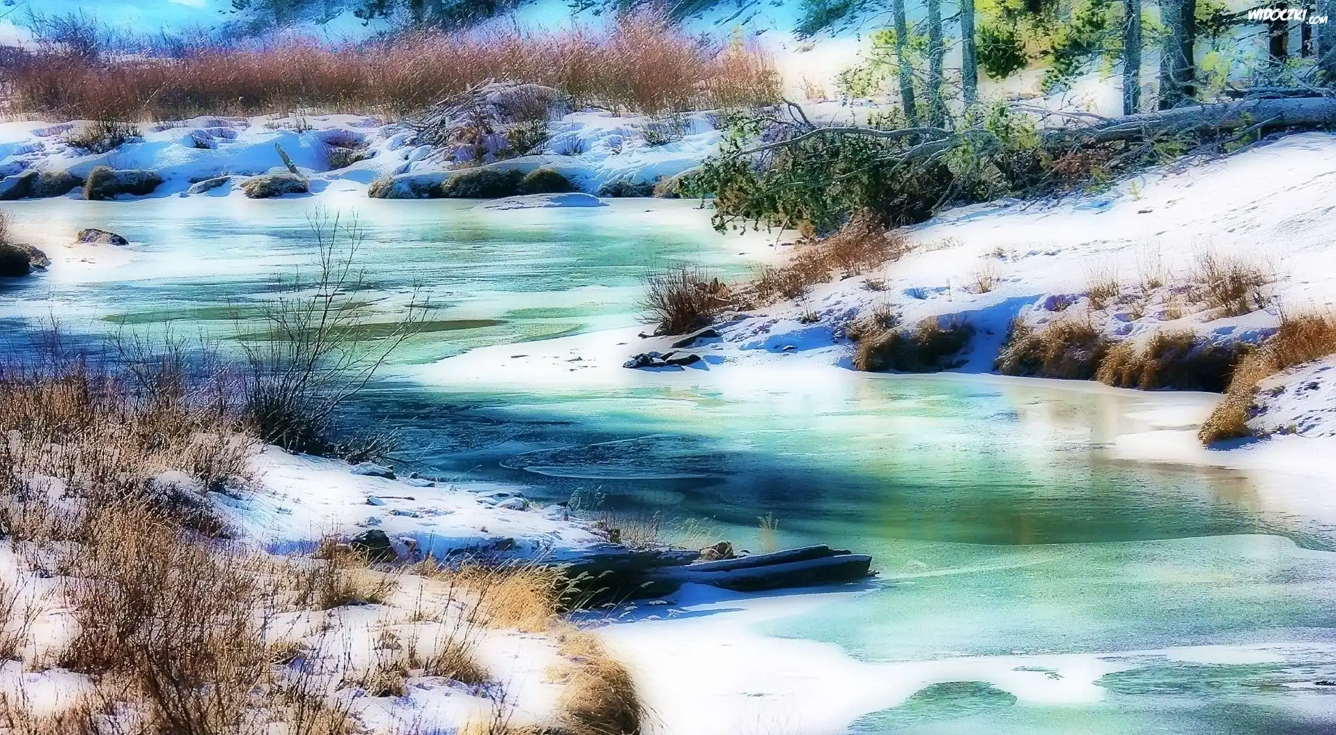 Zdjęcia, Zima, Rzeka, Drzewa