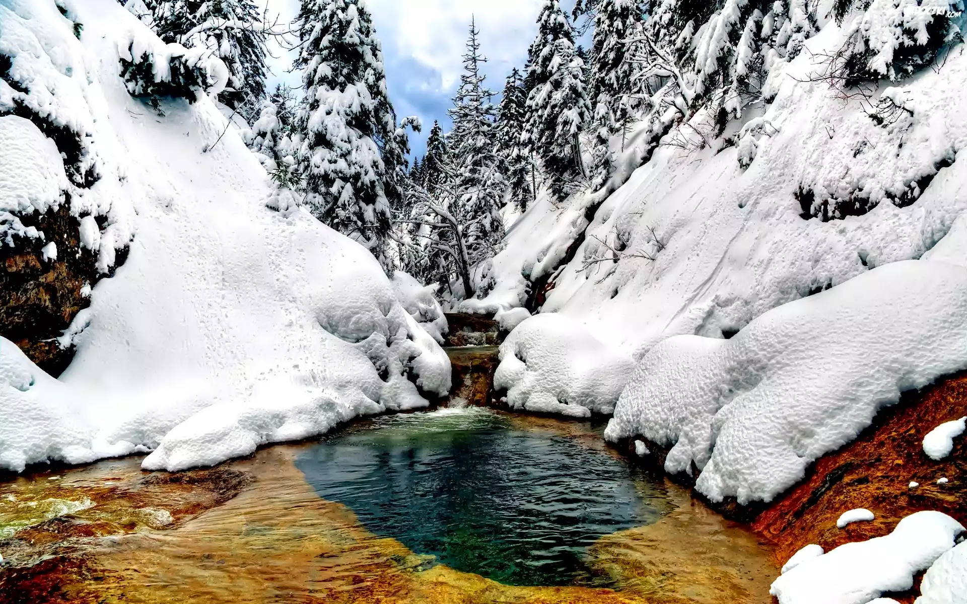 Zdjęcia, Rzeka, Góry, Zima, Śnieg