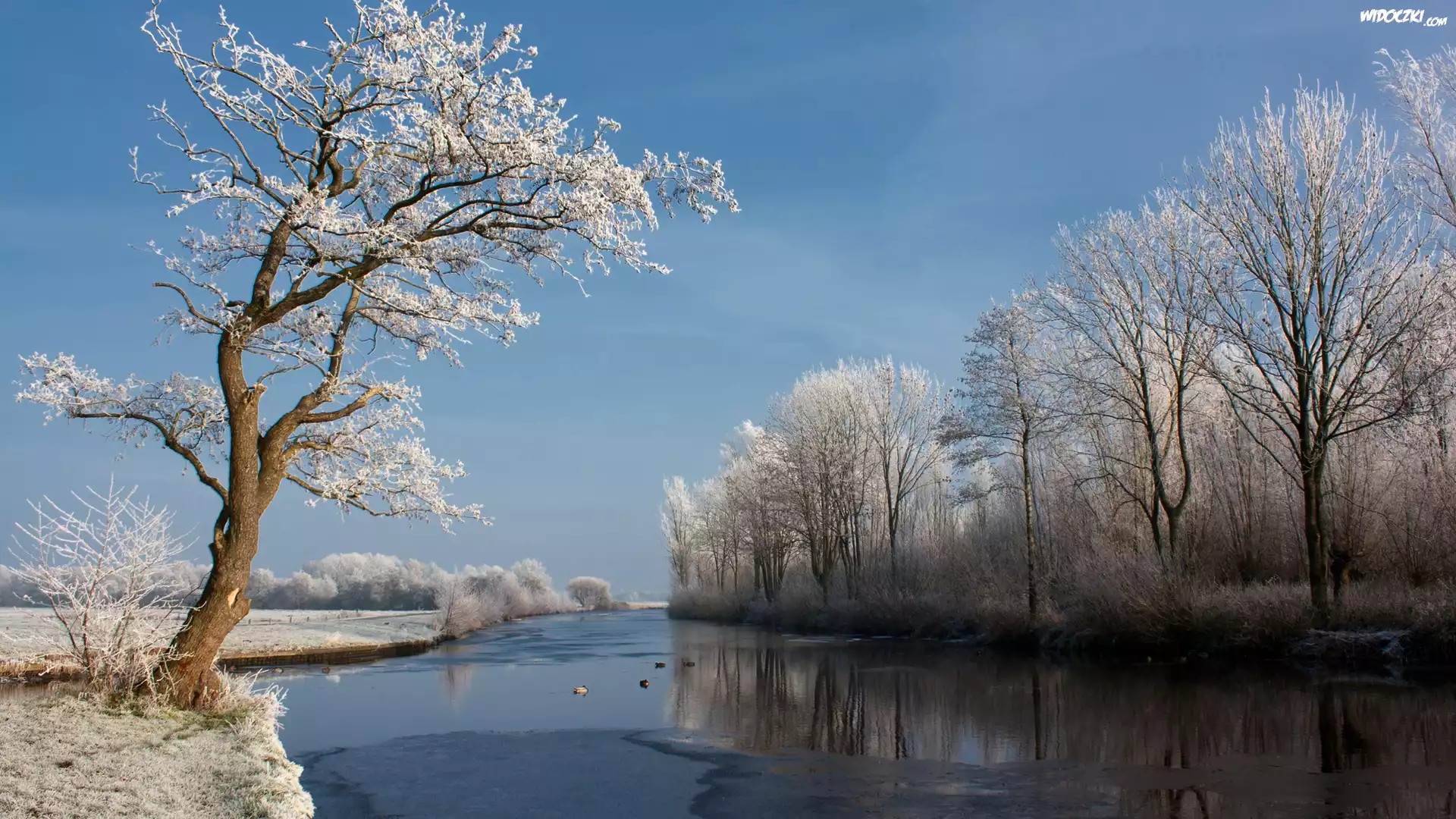 Zdjęcia, Rzeka, Drzewa, Zimowy, Widok