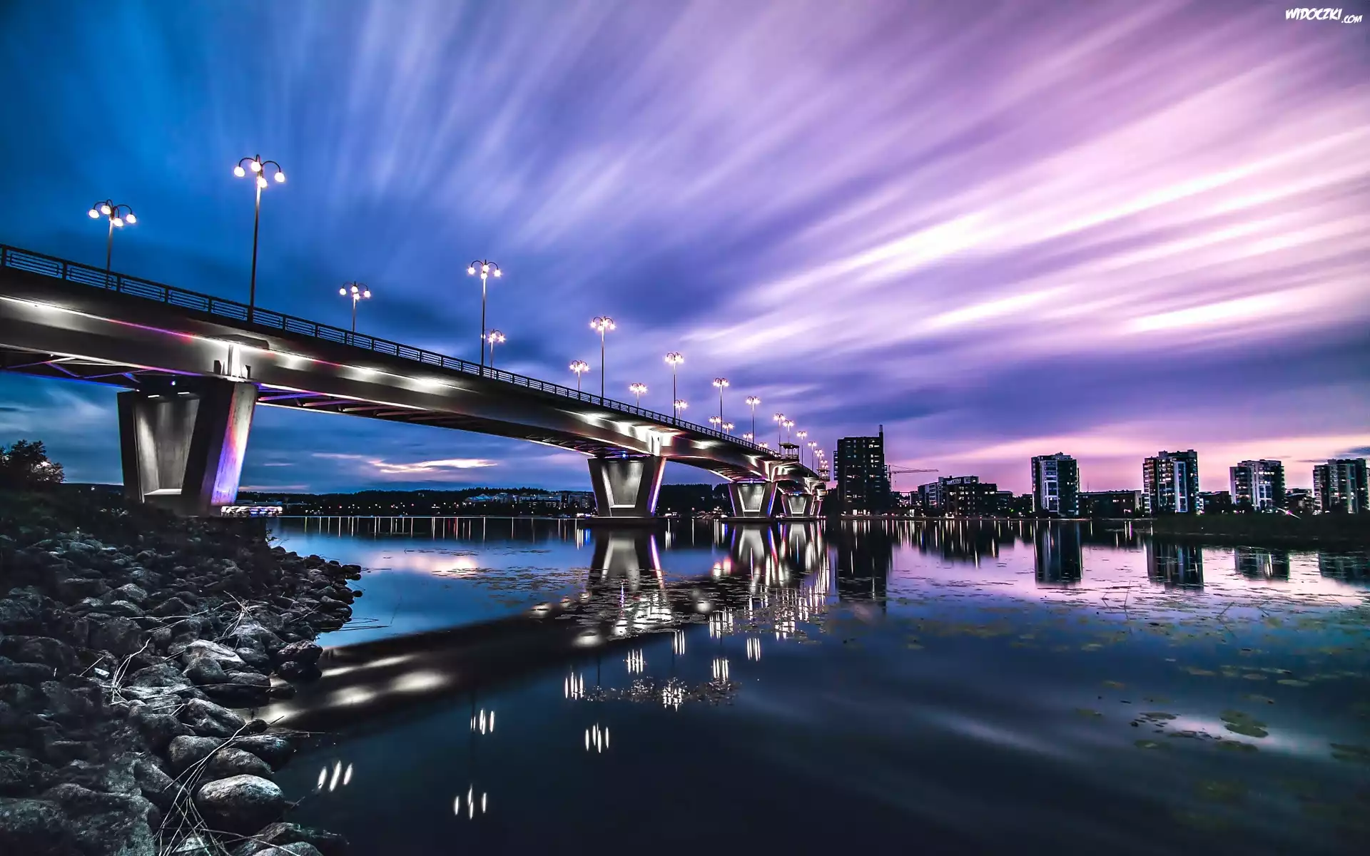 Zdjęcia, Rzeka, Most, Miasto, Zmierzch, Światła