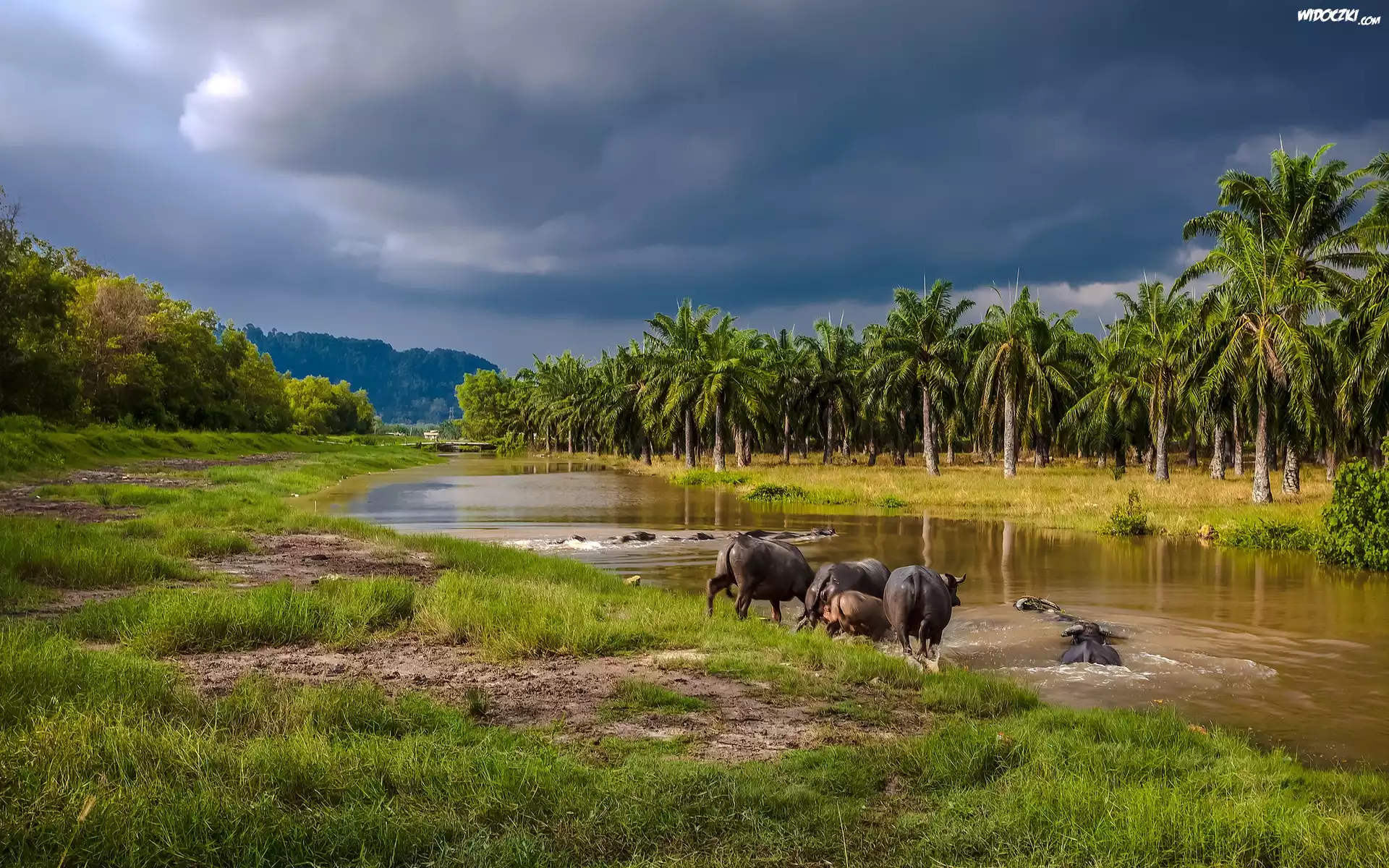 Zdjęcia, Rzeka, Palmy, Zwierzęta, Kąpiel