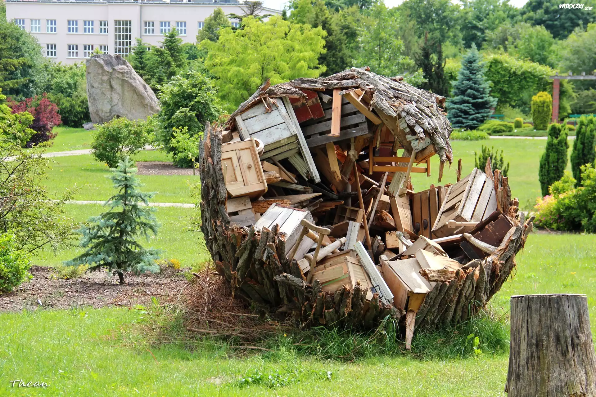Zdjęcia, Rzeźba, Drewniana, Ogród, Botaniczny, Poznań
