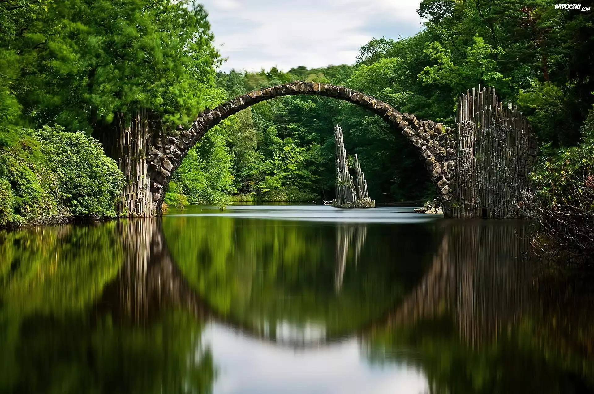 Zdjęcia, Niemcy, Saksonia, Gablenz, Jezioro Rakotz, Kamienny, Most