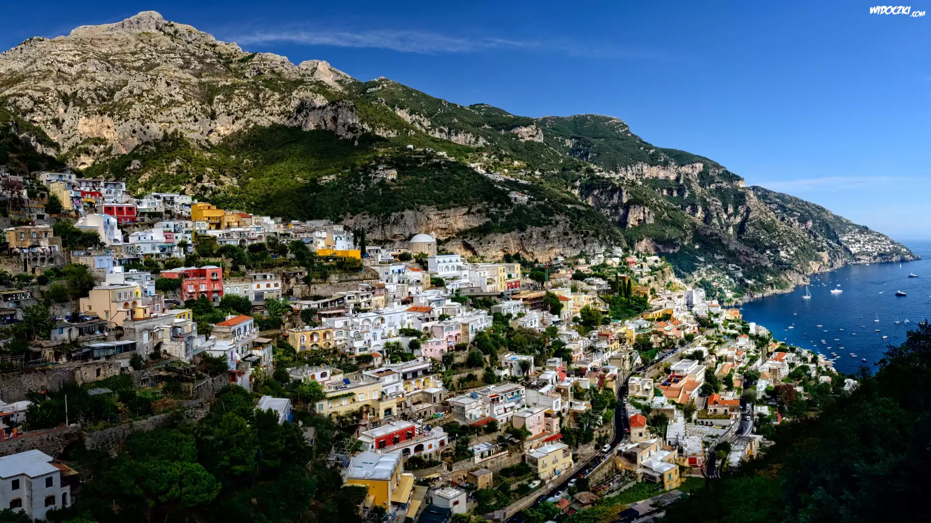 Zdjęcia, Włochy, Salerno, Amalfi, Morze, Wybrzeże, Góry, Domy