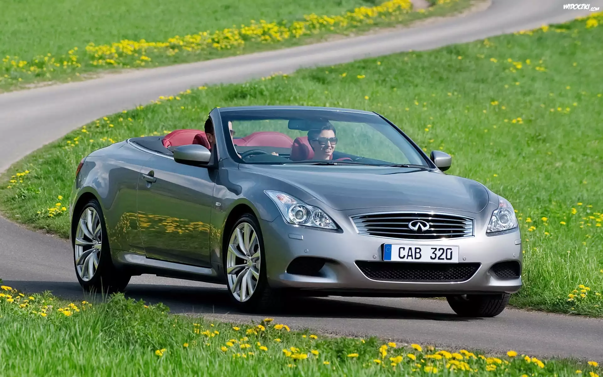 Zdjęcia, Samochód, Infiniti, Droga, Łąka, Kwiaty