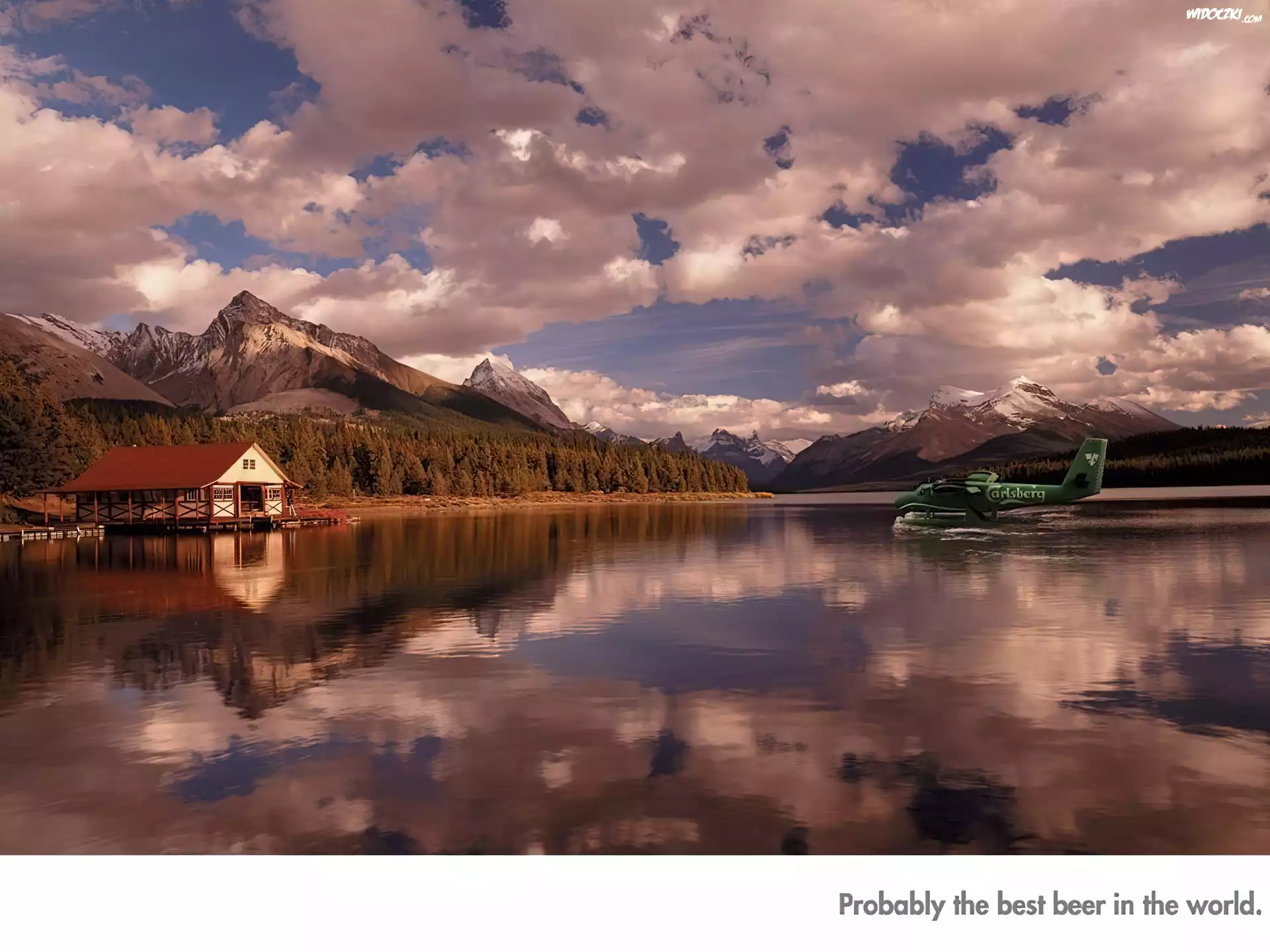 Zdjęcia, Samolot, Dostawa, Calsberg, Tafla, Jeziora, Góry