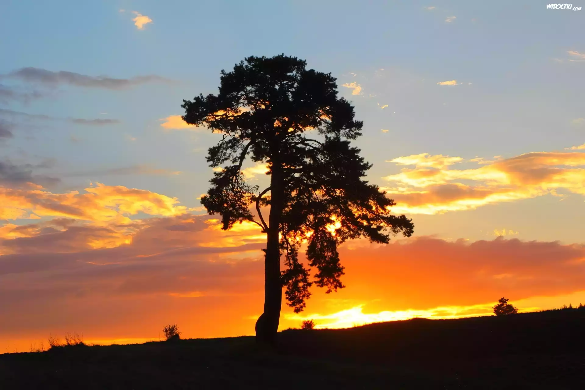 Zdjęcia, Samotna, Sosna, Zachód, Słońca, Niebo