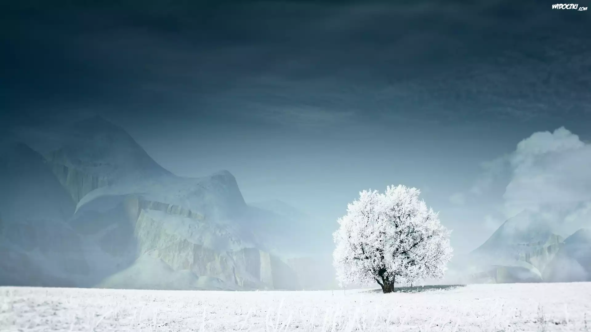 Zdjęcia, Samotne, Drzewo, Śnieg, Zaspy