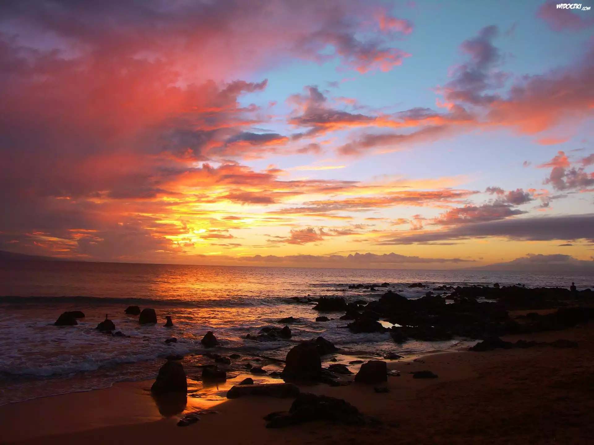Samotny, Człowiek, Plaża, Zachód, Słońca