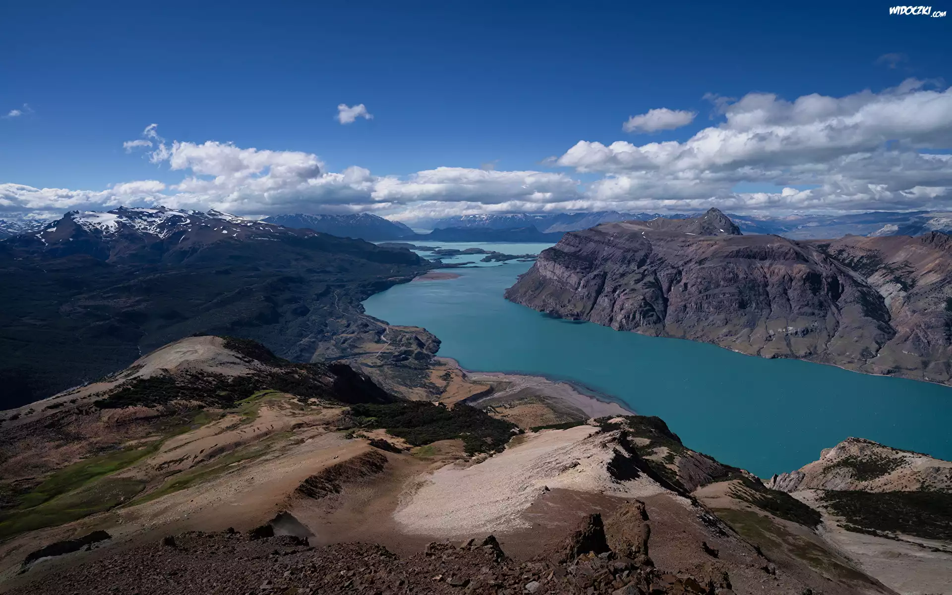 Argentyna, Patagonia, Góry, Andy Patagońskie, Jezioro, San Martin Lago, Niebo, Chmury