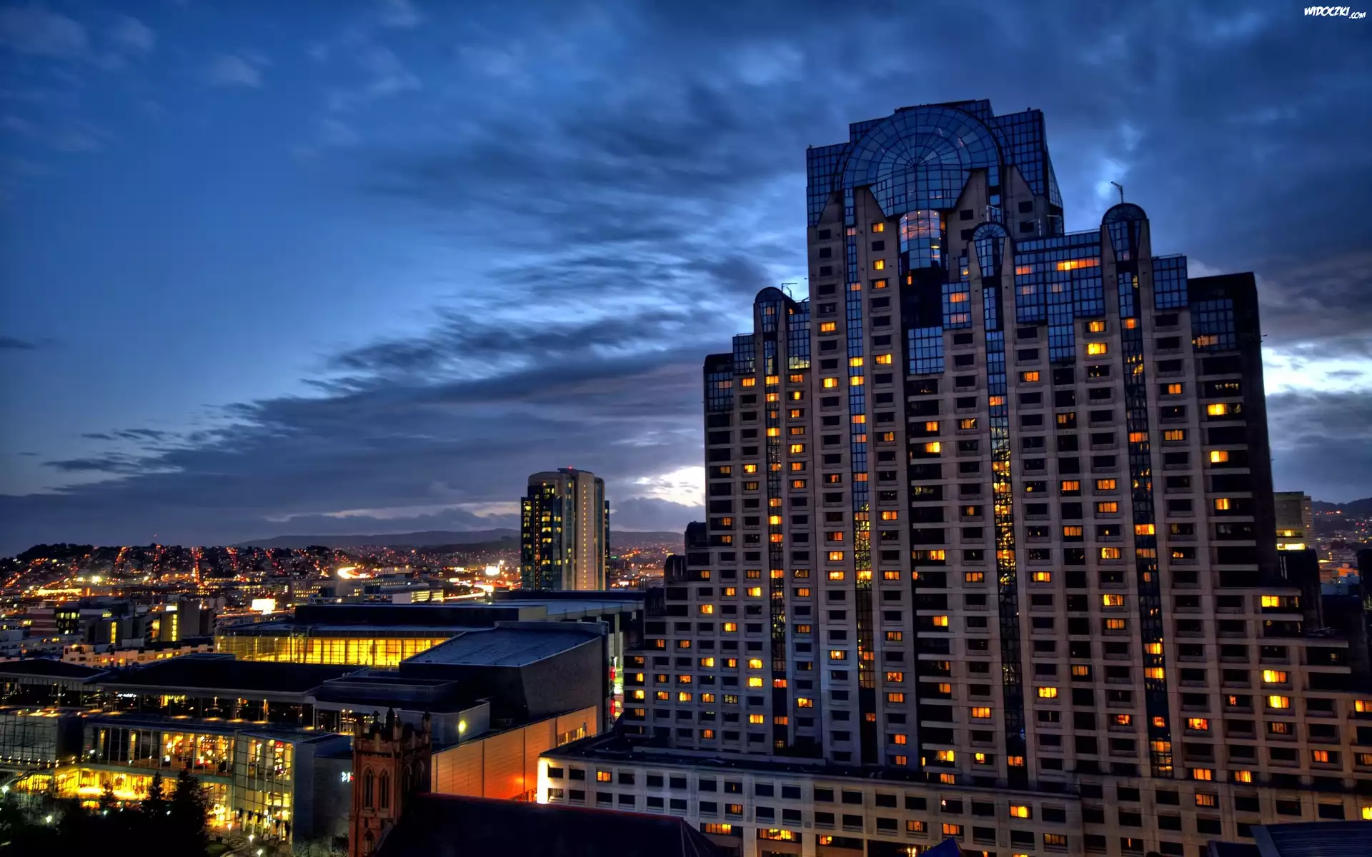 San Francisco, Nocą, Chmury, Panorama, Miasta