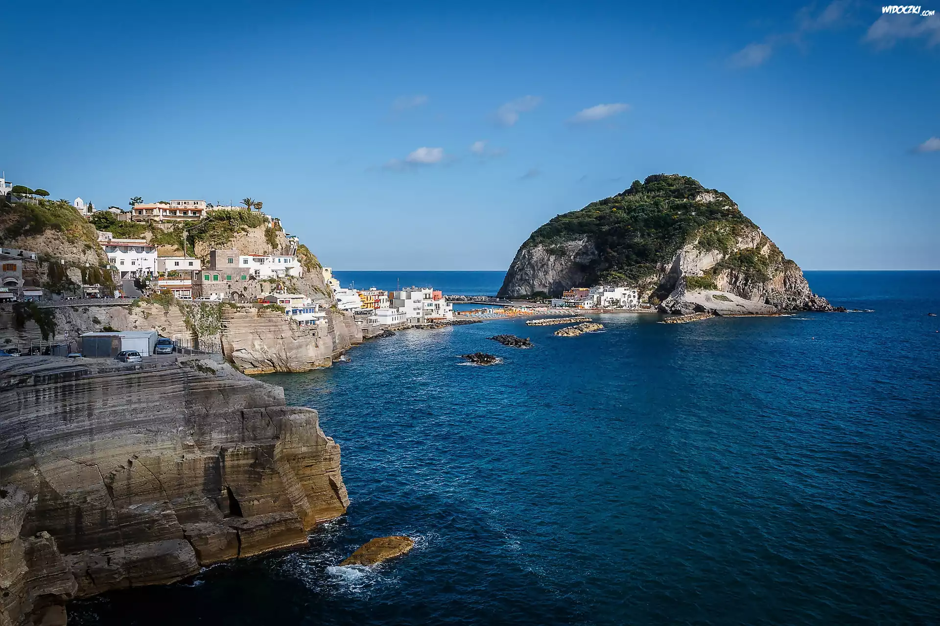 Zdjęcia, Włochy, Sant Angelo, Morze Tyrreńskie, Domy, Skały