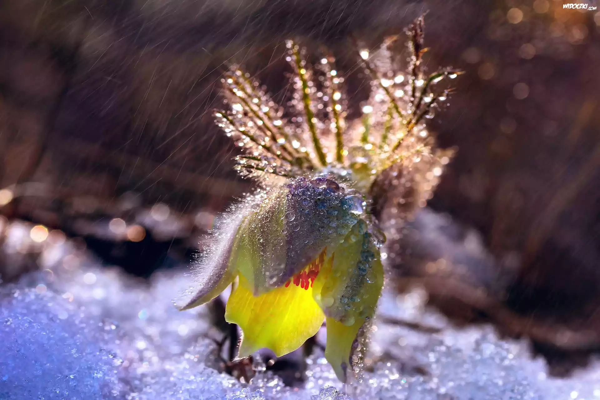 Zdjęcia, Sasanka, Krople, Deszcz, Światło