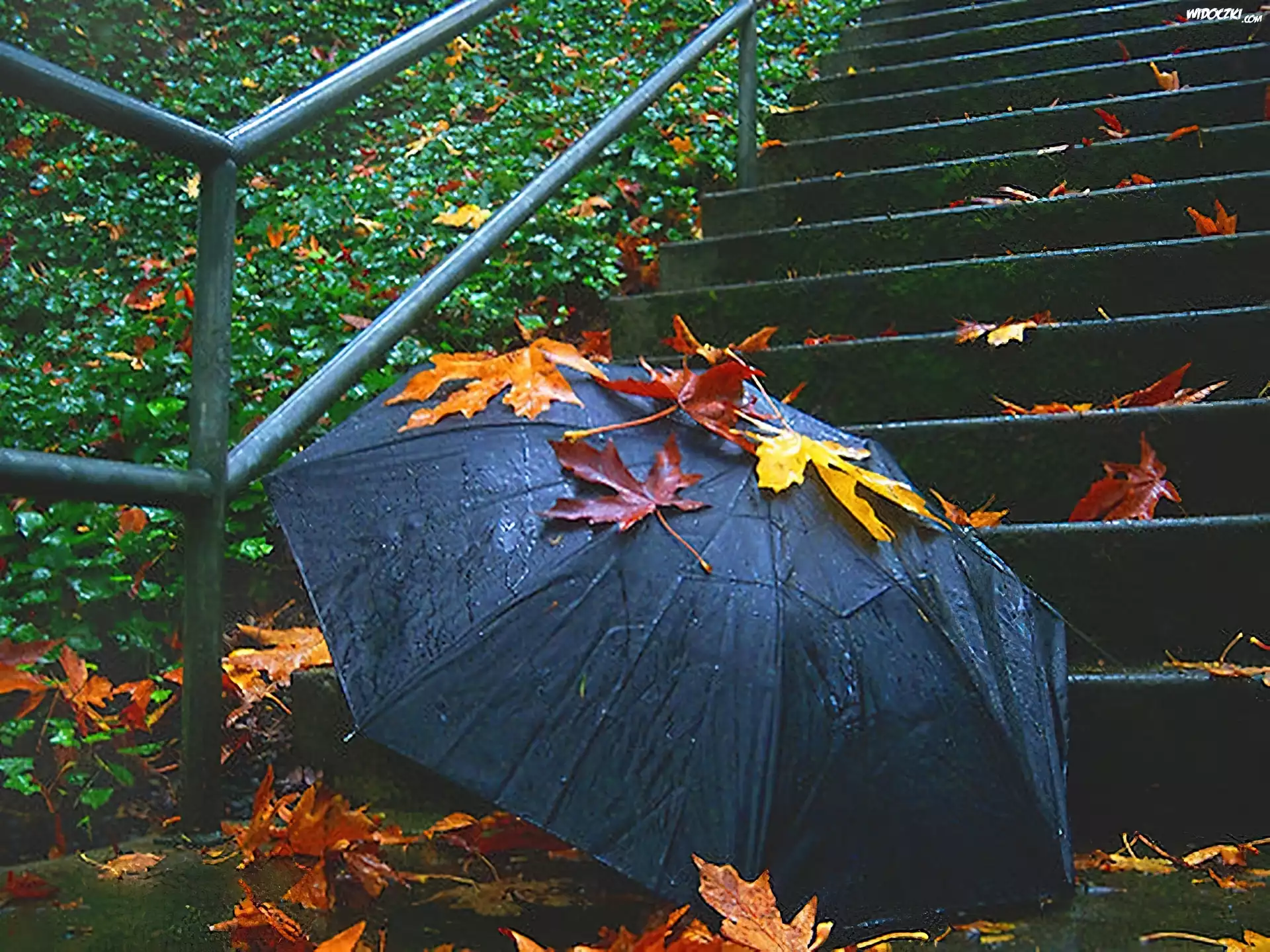 Zdjęcia, Schody, Parasol, Liście, Jesień
