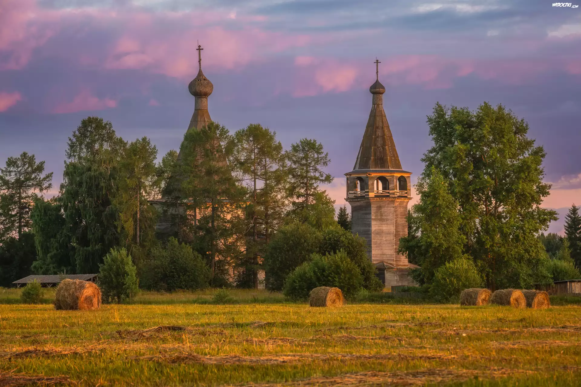 Cerkiew, Drzewa, Pole, Ściernisko, Bele, Słomy