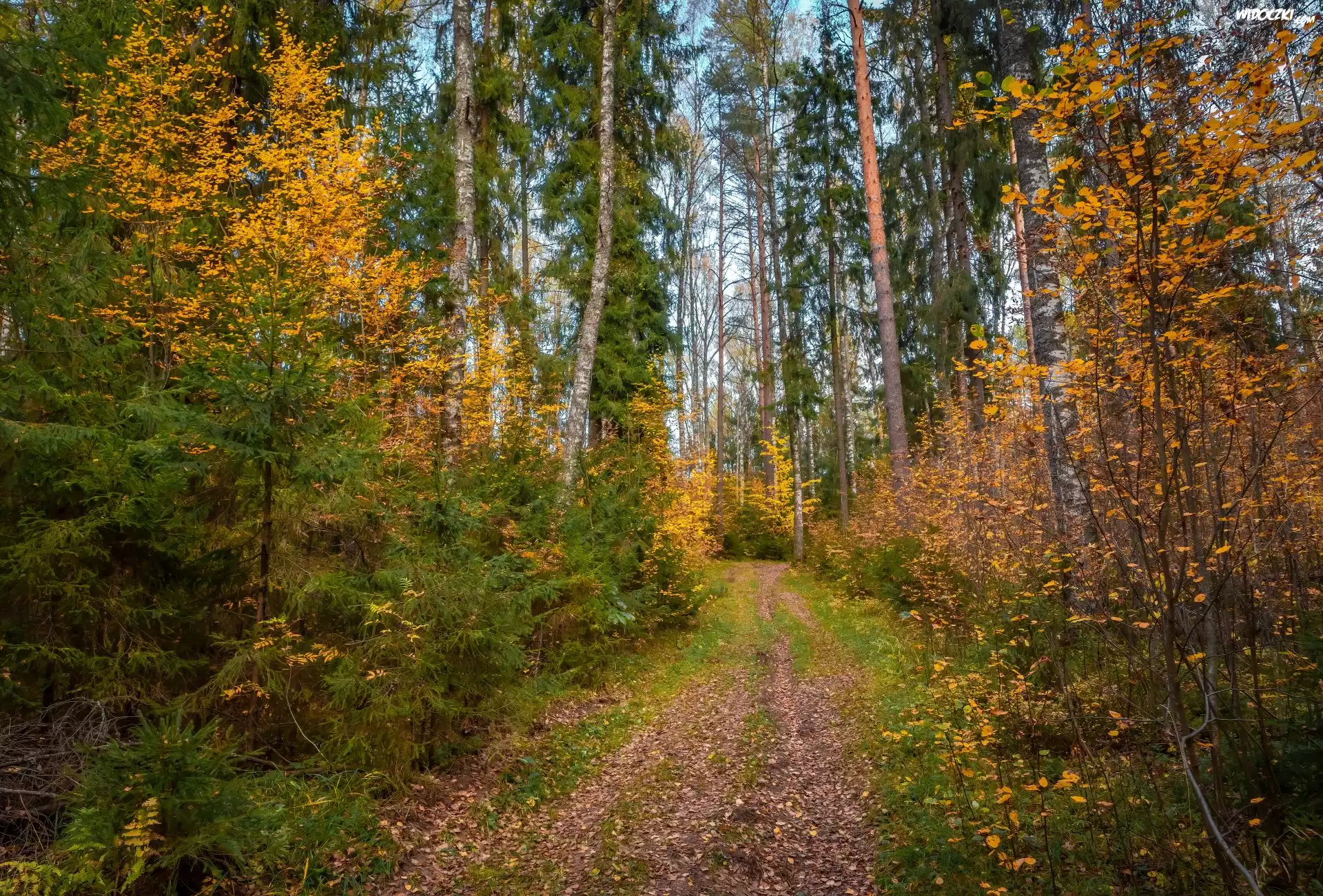 Las, Drzewa, Krzewy, Ścieżka, Liście, Jesień