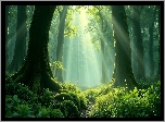 Las, Przebijające światło, Ścieżka, Omszałe, Korzenie, Drzewa