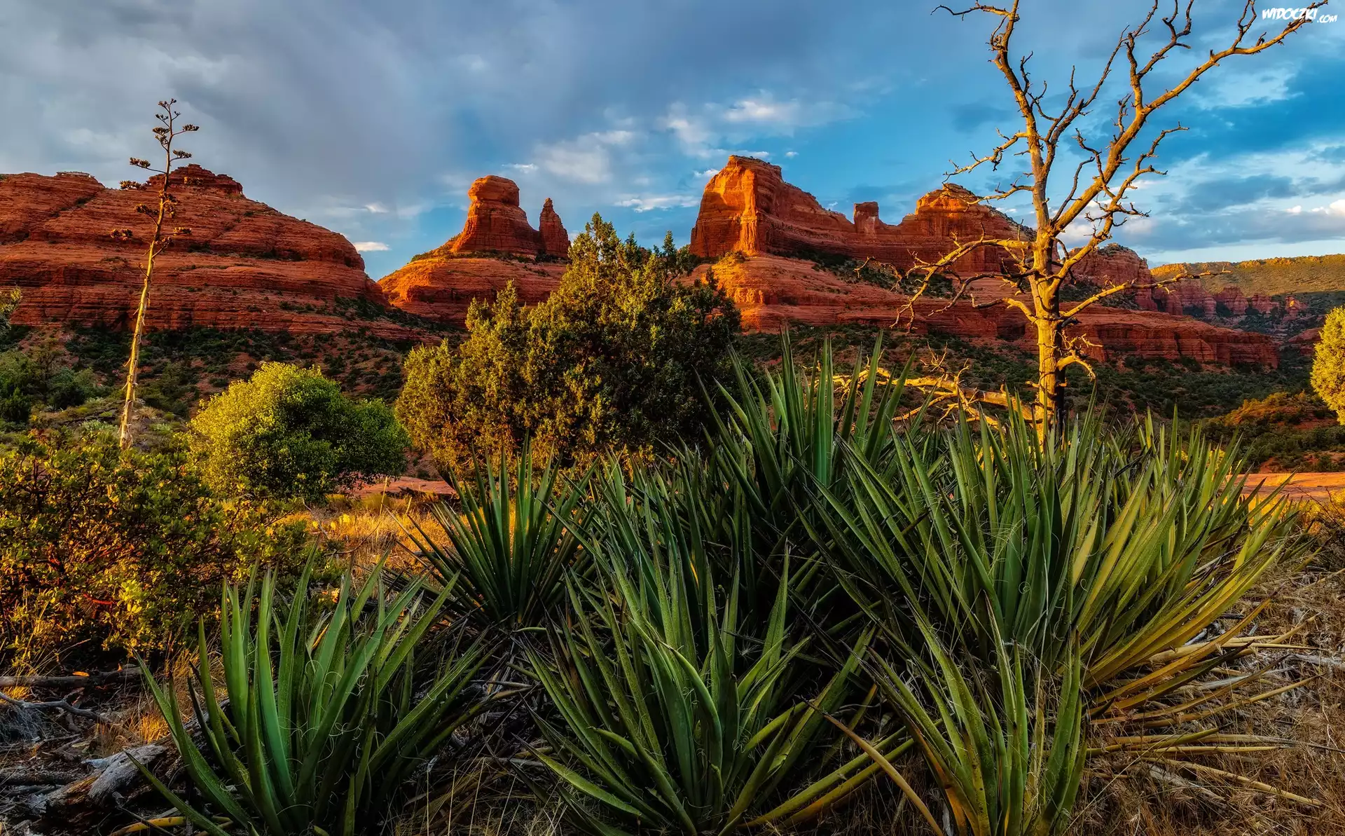 Stany Zjednoczone, Arizona, Sedona, Skały, Drzewa, Rośliny