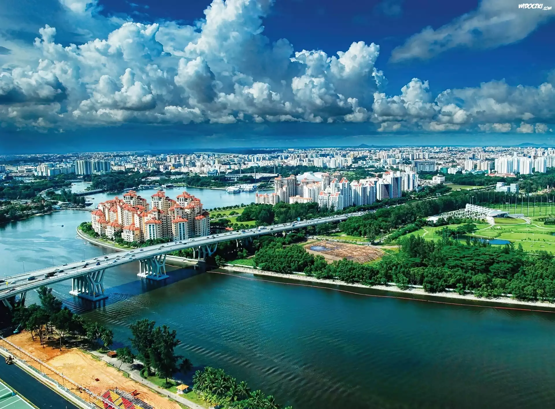 Zdjęcia, Singapur, Rzeka, Most, Panorama, Miasta