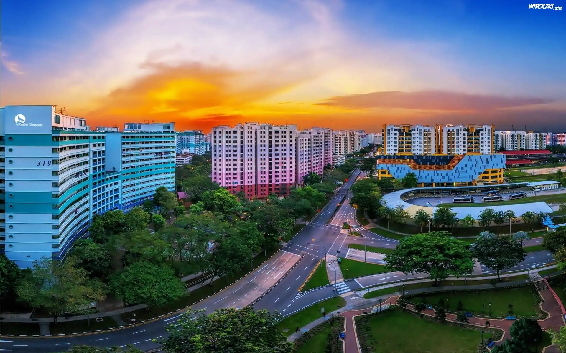 Zdjęcia, Singapur, Panorama, Miasta, Zachód, Słońca
