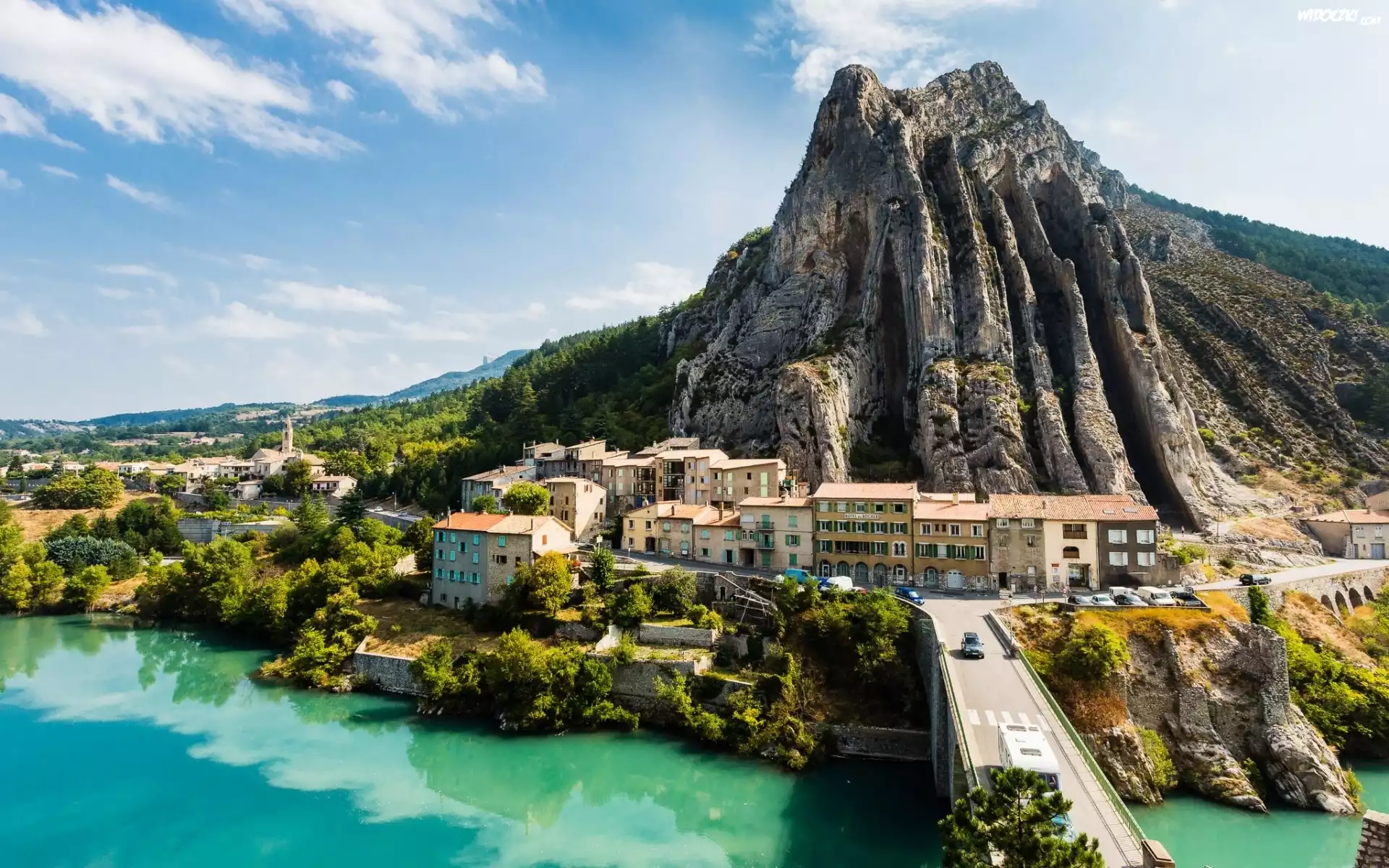 Zdjęcia, Sisteron, Francja, Góra, Domy, Most, Rzeka