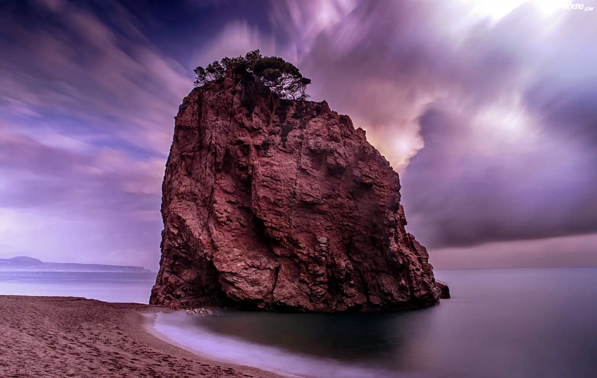 Zdjęcia, Skała, Morze, Plaża, Chmury, Mgła