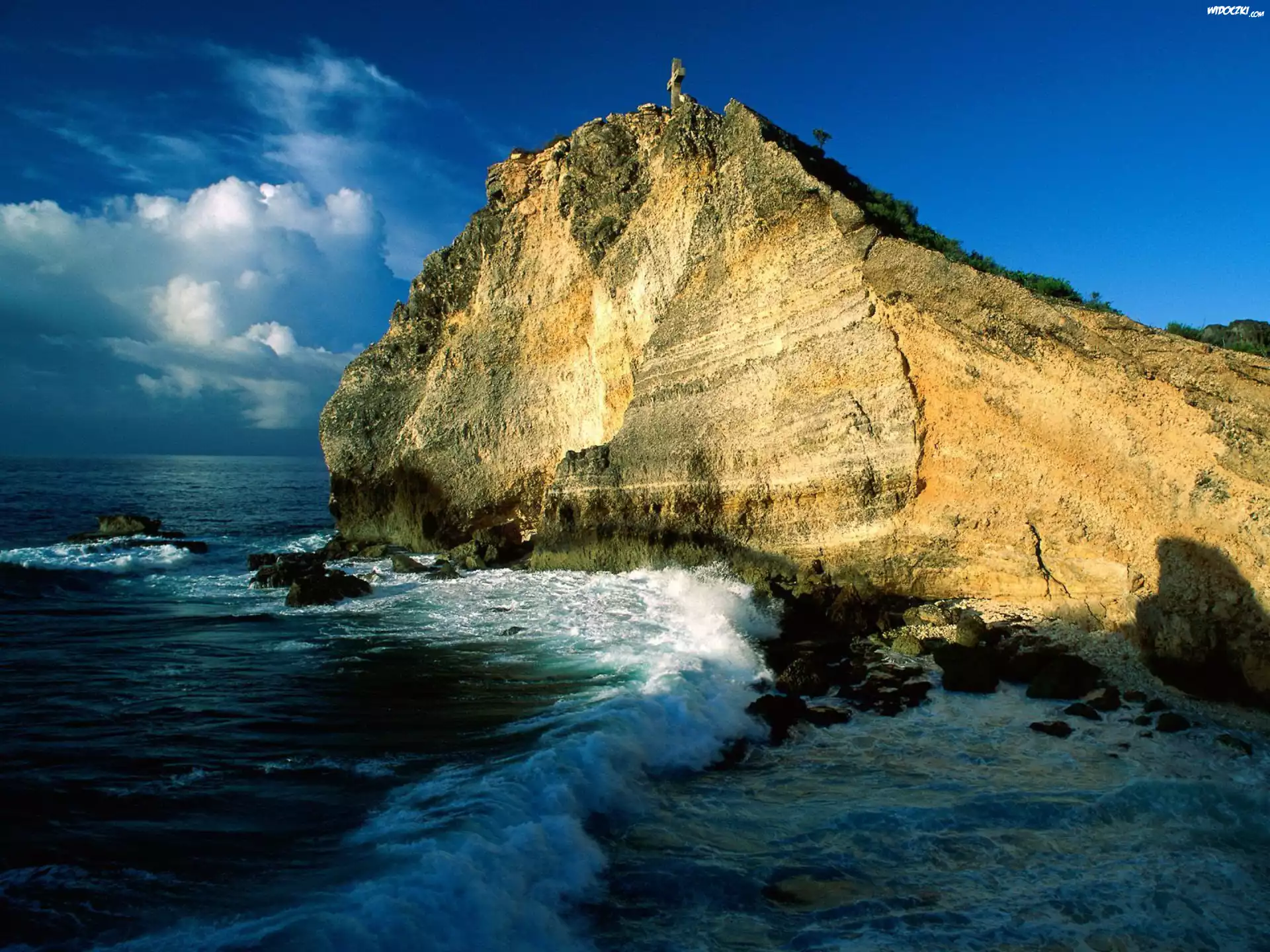 Skała, Fale, Morze, Krzyż