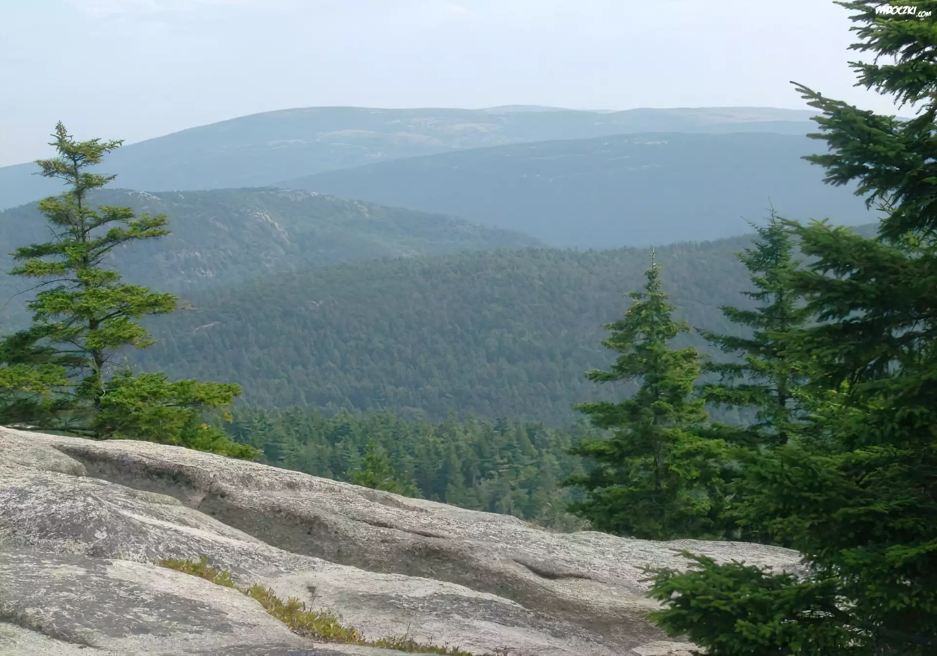Zdjęcia, Skała, Świerki, Góry, Widok