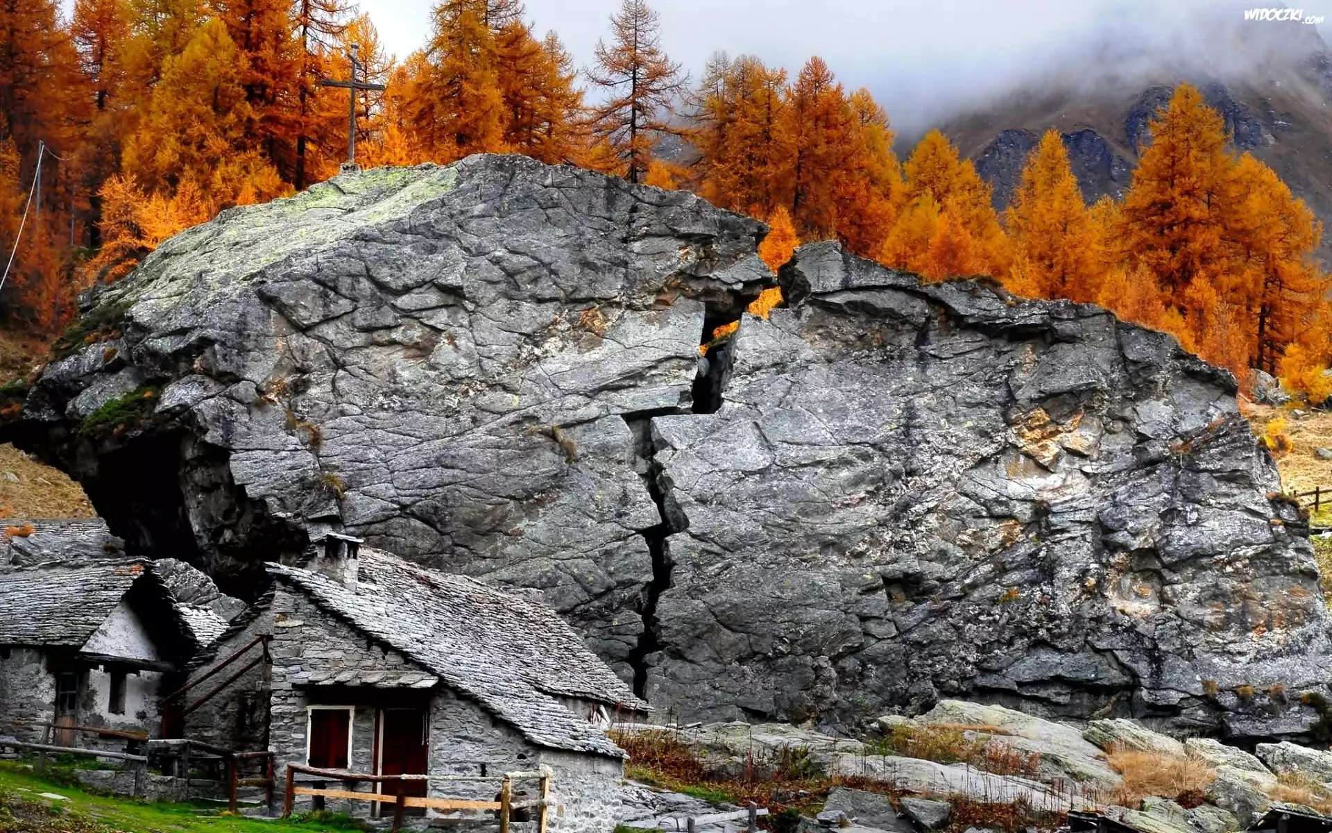Jesień, Skała, Domy