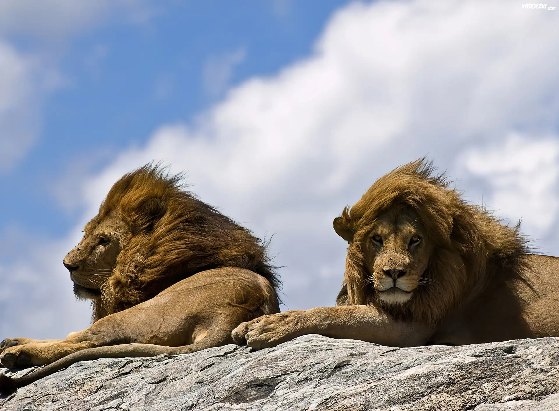 Zdjęcia, Skała, Dwa, Leżące, Lwy