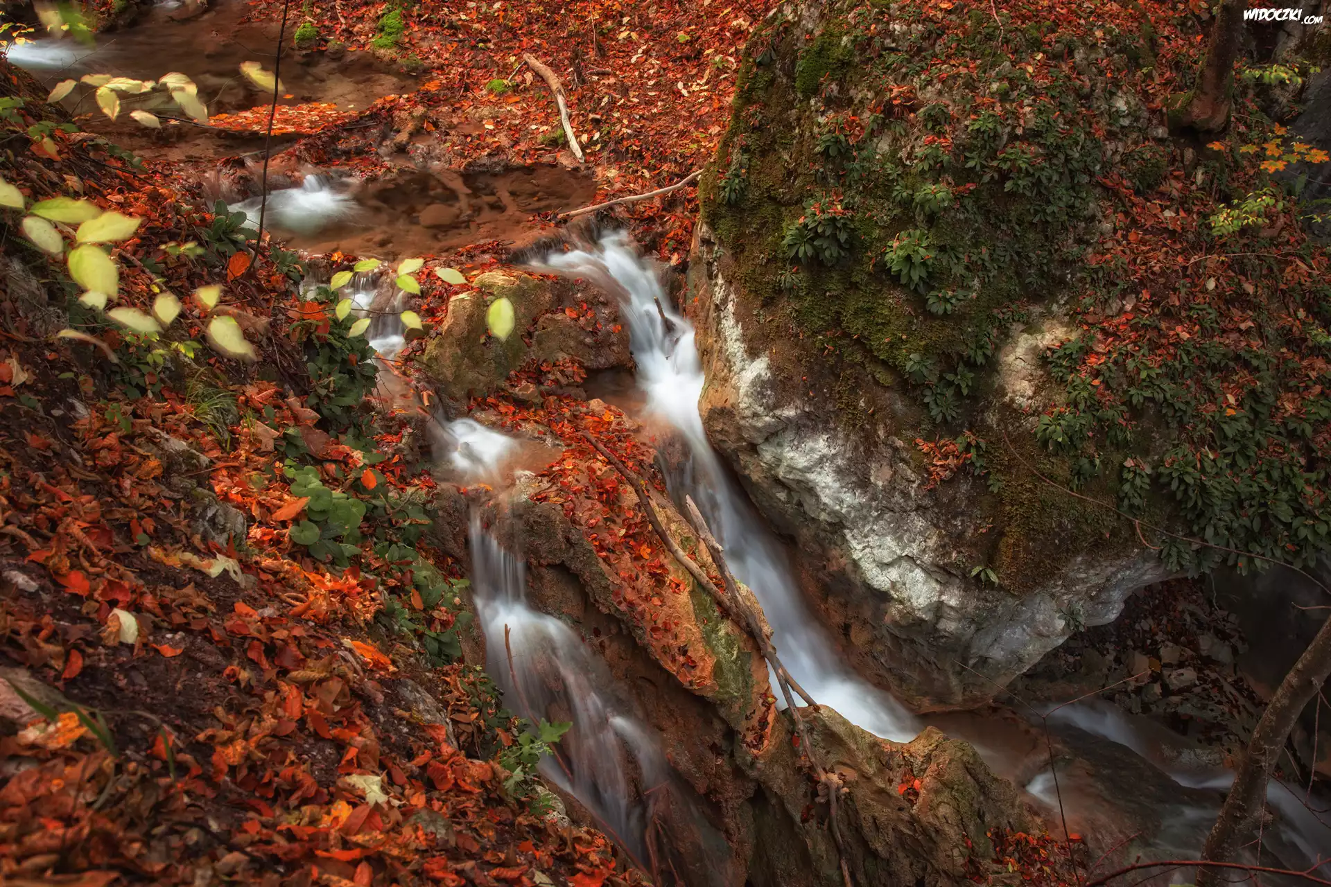 Zdjęcia, Skała, Strumyk, Rzeczka, Liście, Rośliny