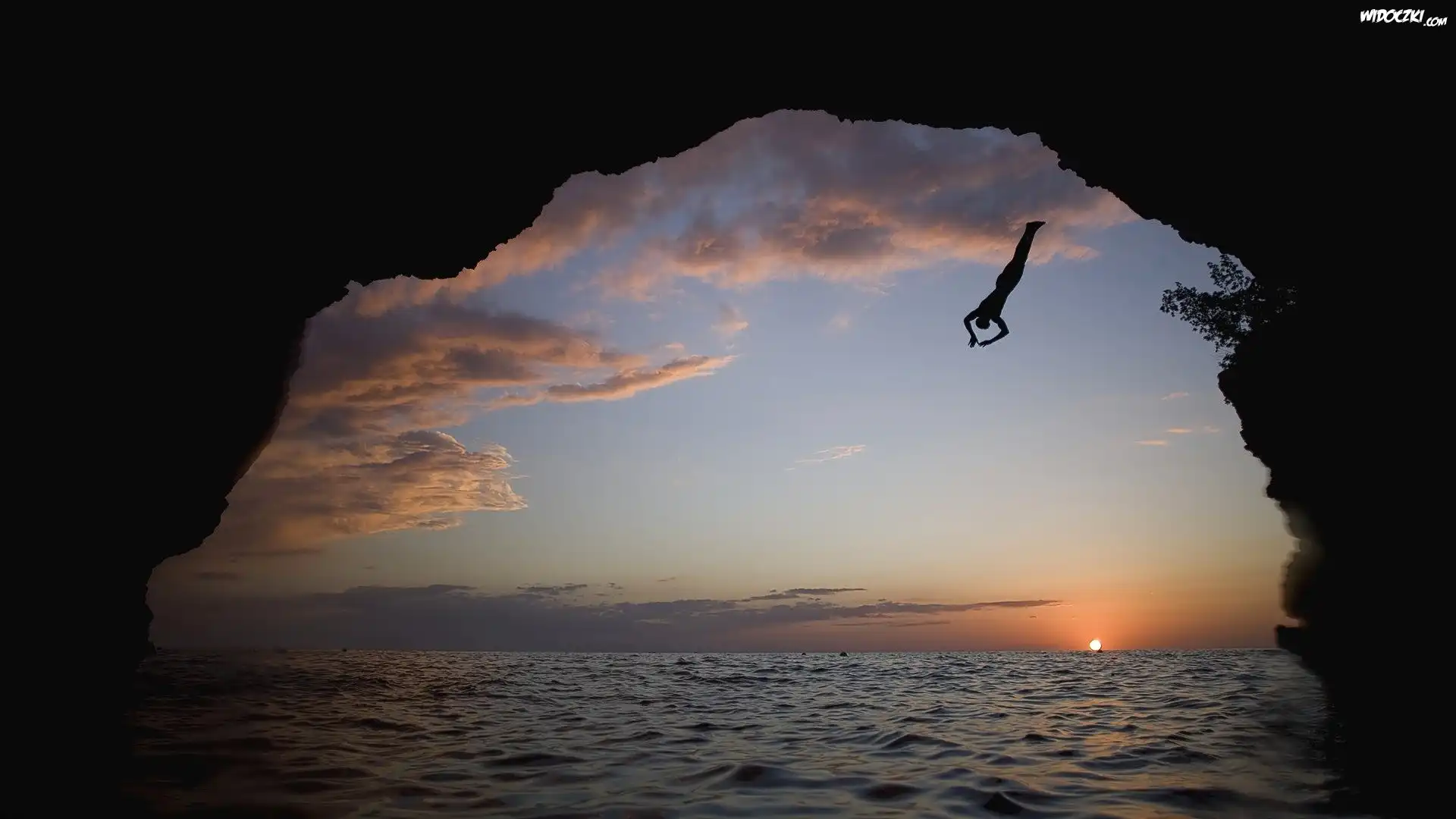 Zdjęcia, Morze, Skała, Zachód, Słońca, Skok, Do, Wody