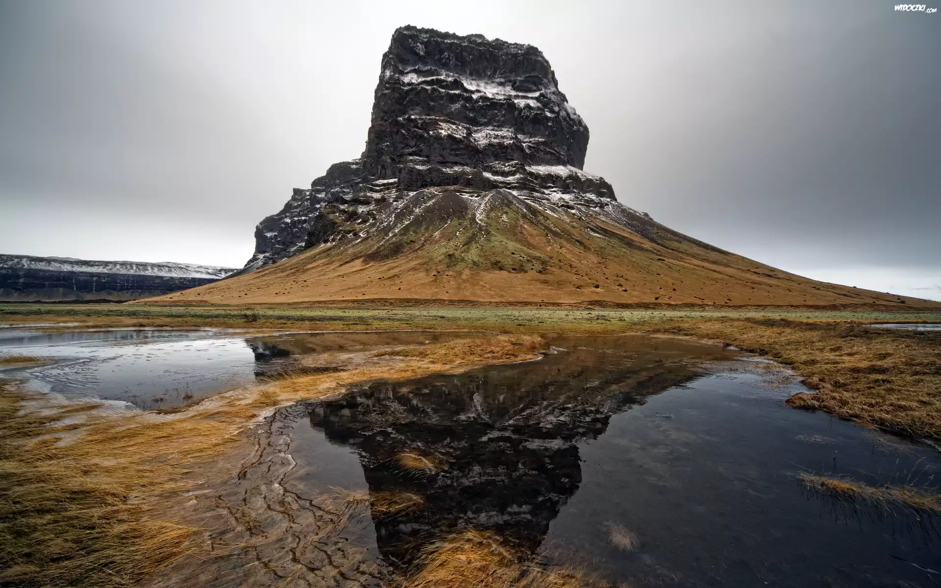 Zdjęcia, Skała, Jezioro, Pochmurne, Niebo