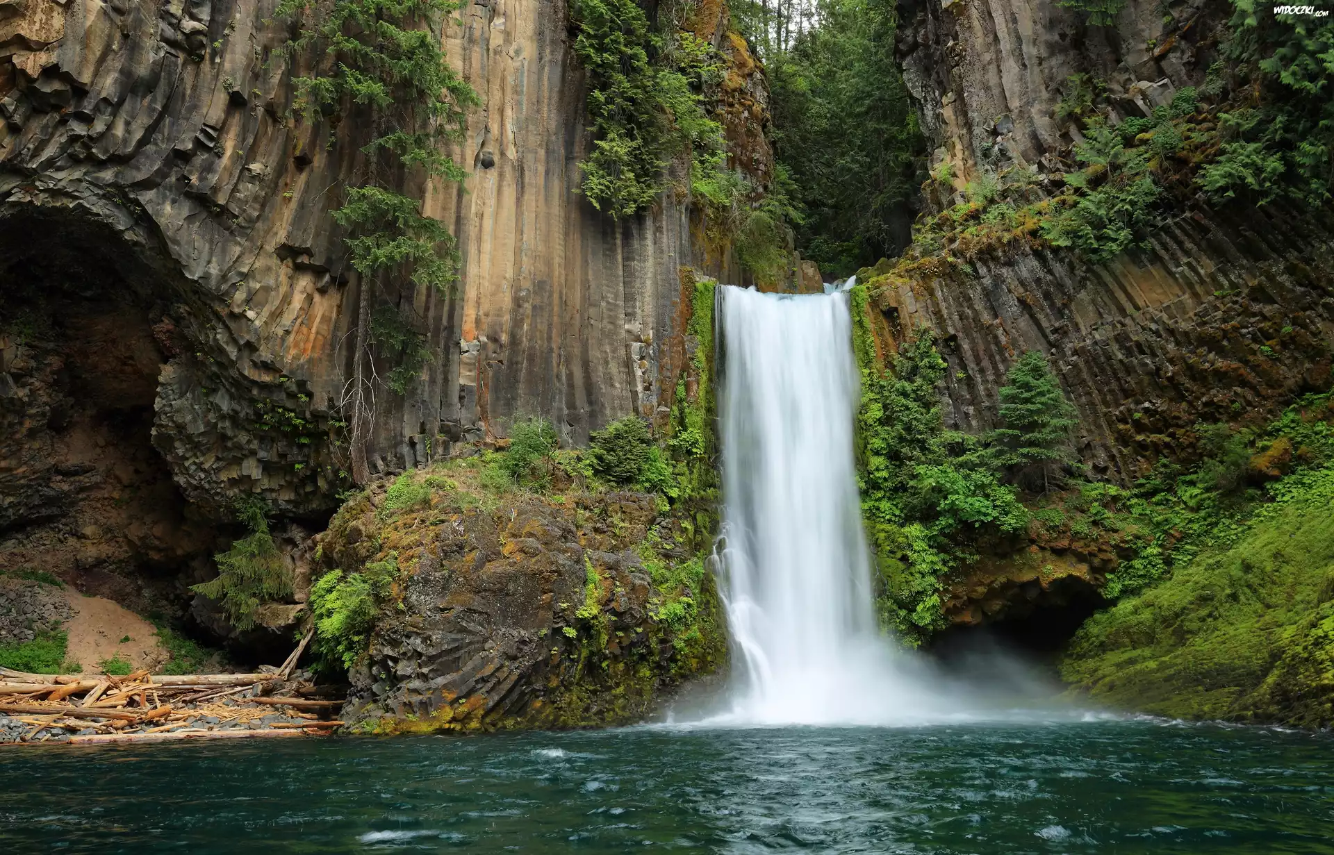 Zdjęcia, Wodospad, Skała, Rośliny