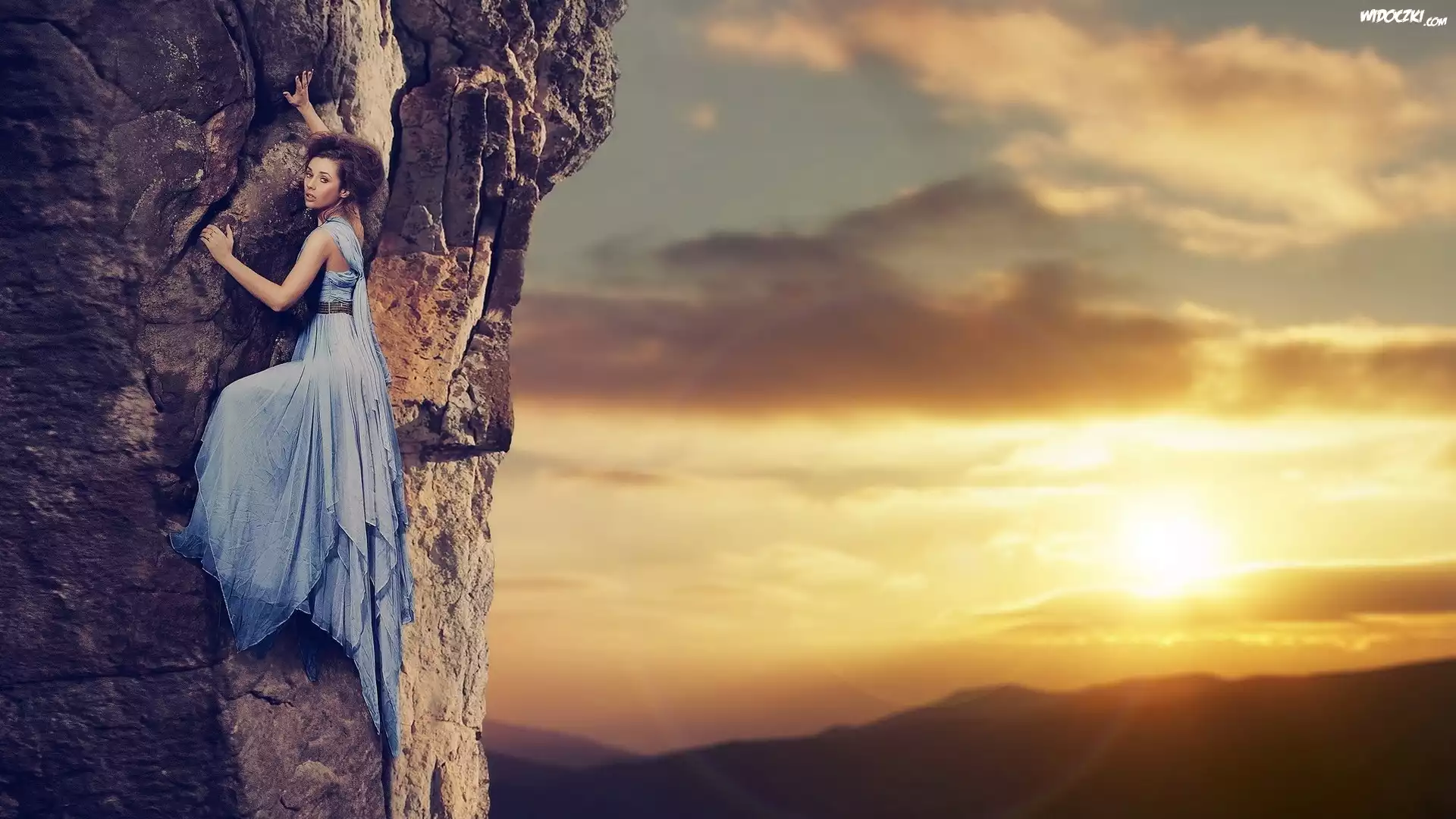 Skała, Kobieta, Wspinaczka, Słońce