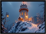 Zdjęcia, Zima, Oświetlona, Wieża, Skała