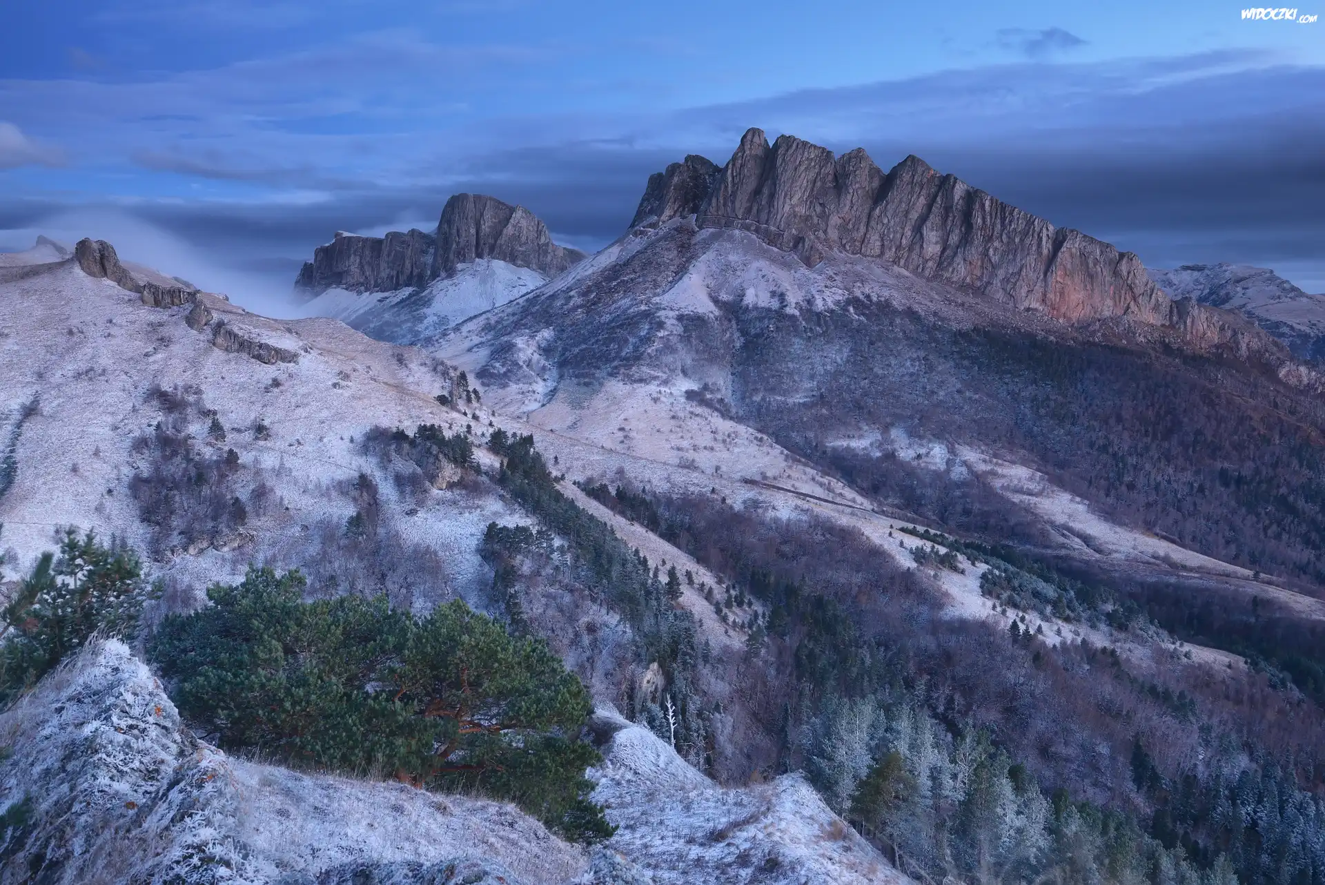 Zdjęcia, Skaliste, Góry, Drzewa, Kaukaz, Adygeja, Rosja