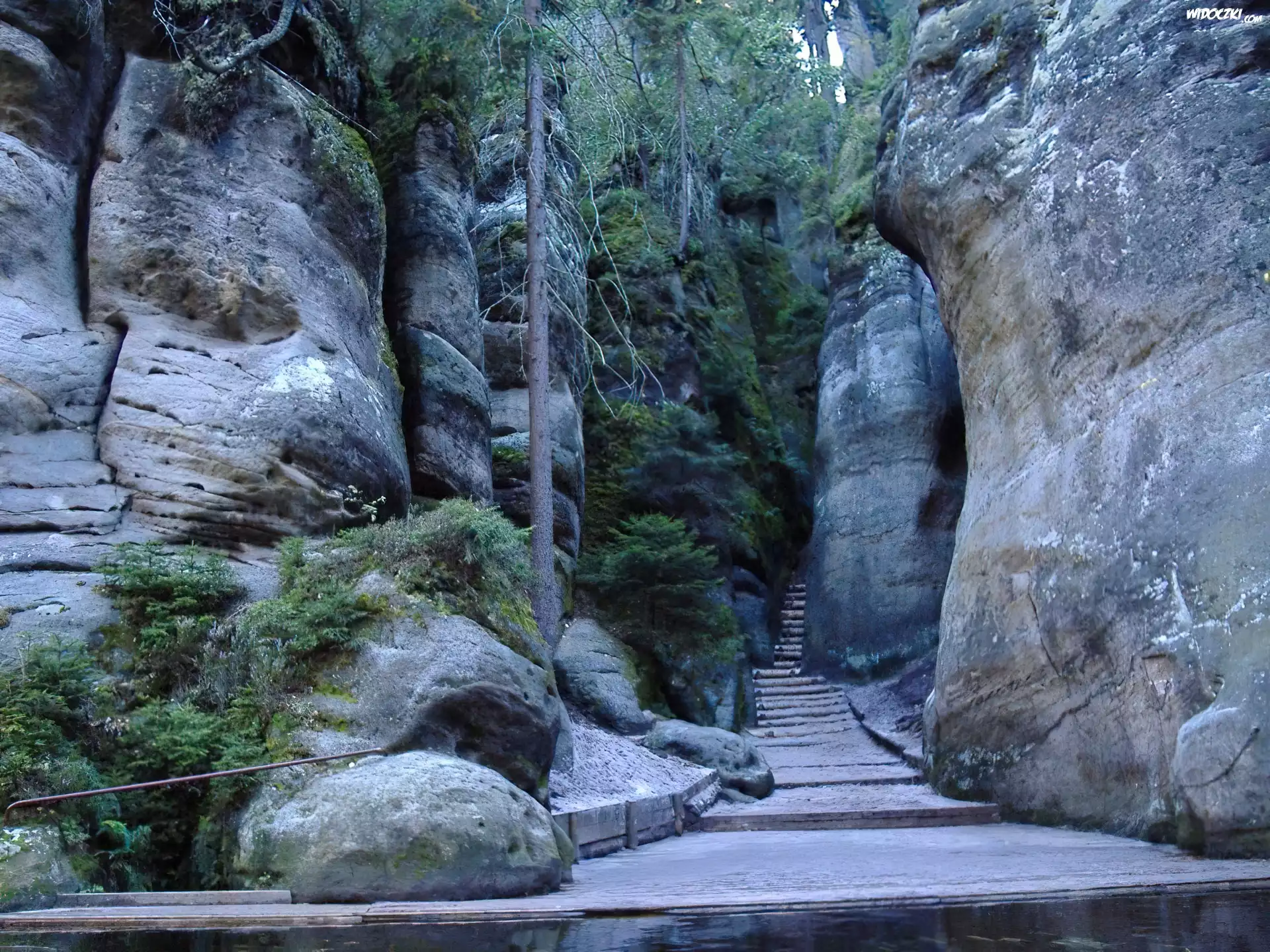 Zdjęcia, Skały, Schodki, Drzewa, Adrspach, Czechy