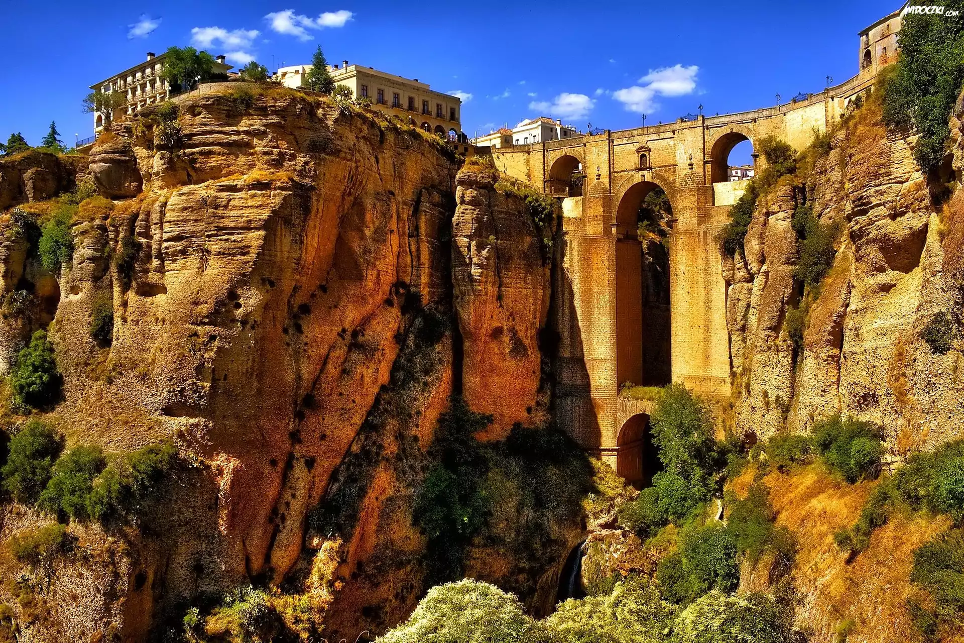 Zdjęcia, Wąwóz Tajo, Skały, Most Puente Nuevo, Domy, Miasto Ronda, Andaluzja, Hiszpania