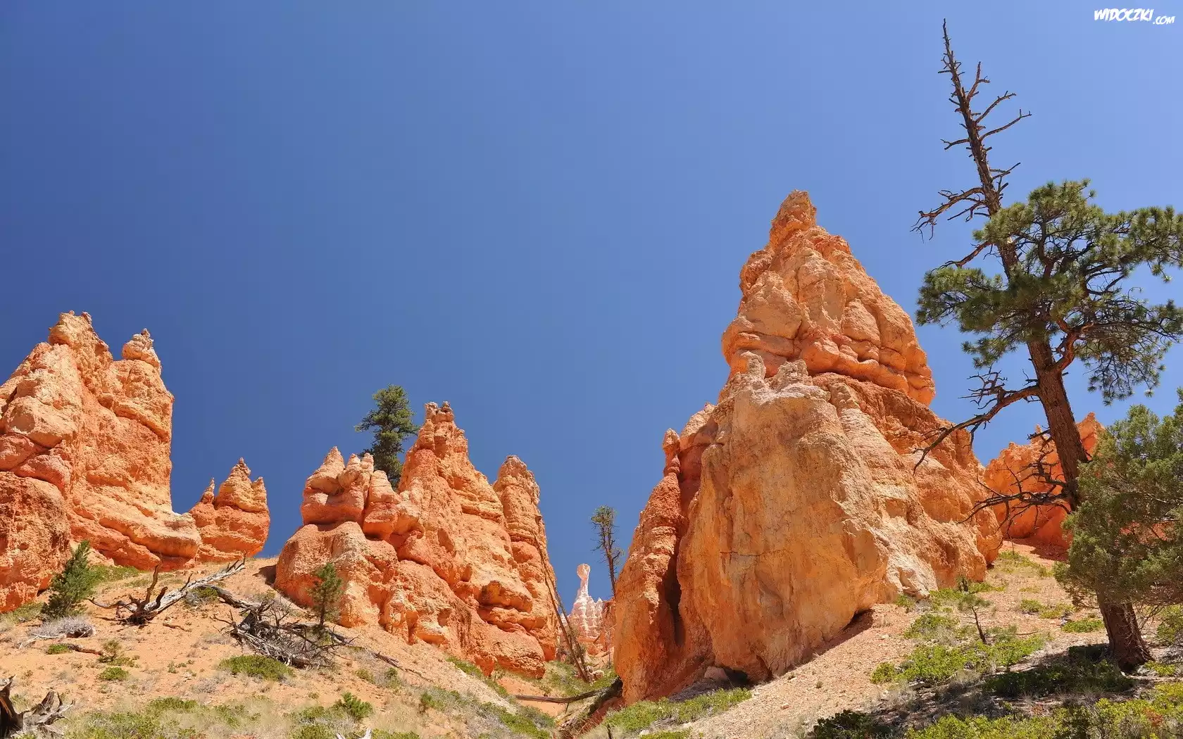Zdjęcia, Skały, Drzewo, Iglaste, Czyste, Niebo